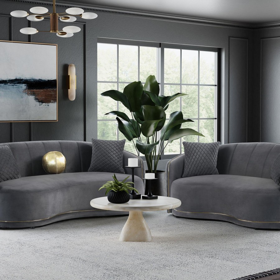 Brookside Velvet Upholstered Curved Loveseat Dark Grey