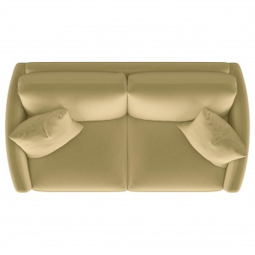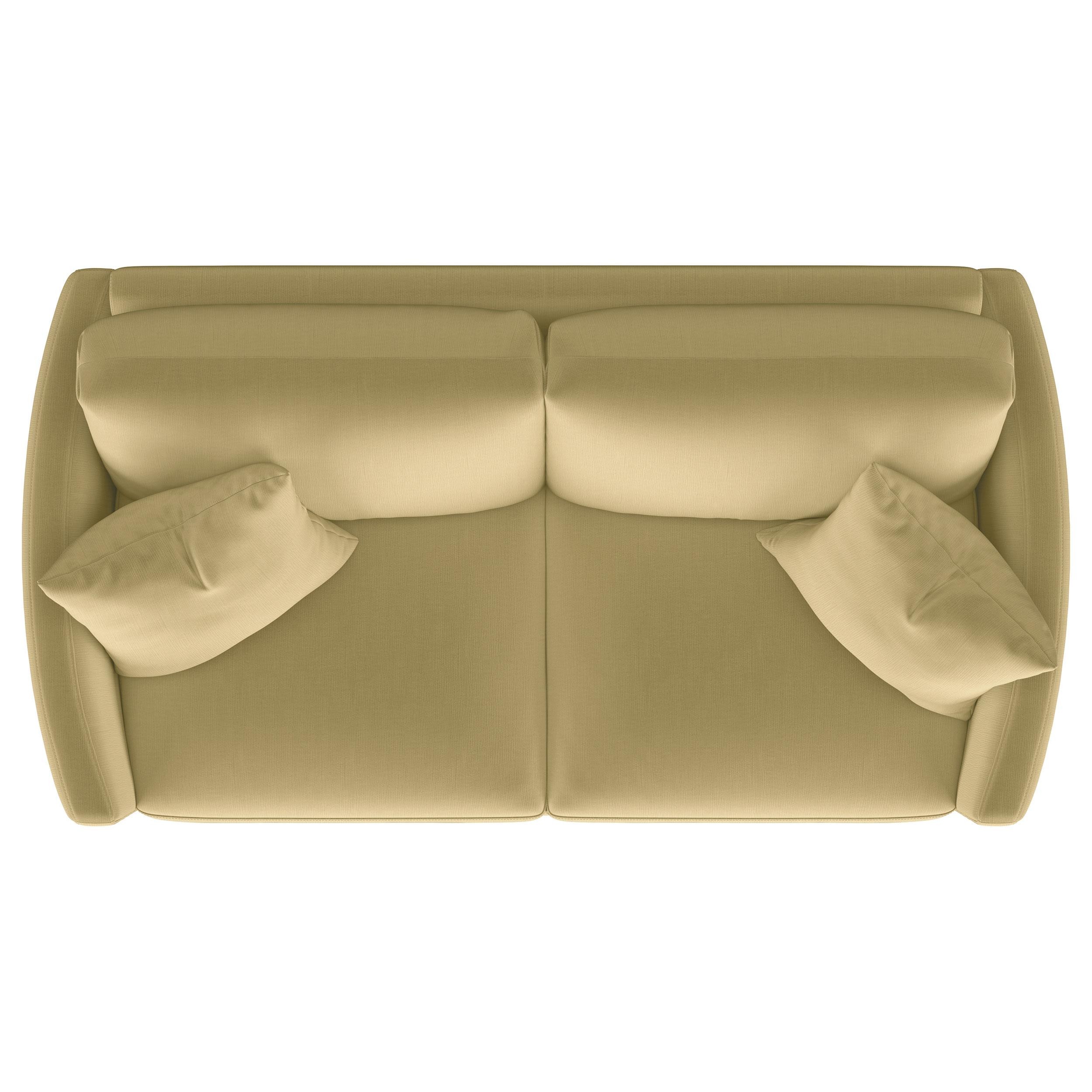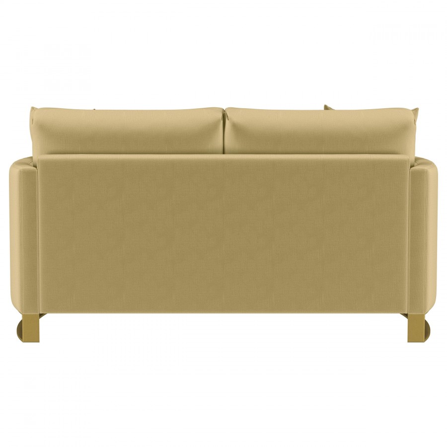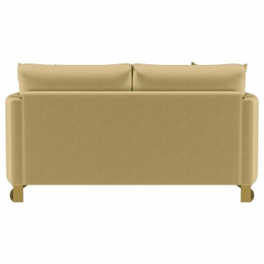 Indulge in opulent comfort with this textured velvet loveseat. Its reversible feather blend seat and back cushions, complemented by curved arms and gold stainless steel legs. Smooth upholstery and lustrous details blend simplicity with timeless splendor, making this piece a perfect focal point for refined interiors. With its inviting profile and graceful presence, it elevates both style and relaxation.