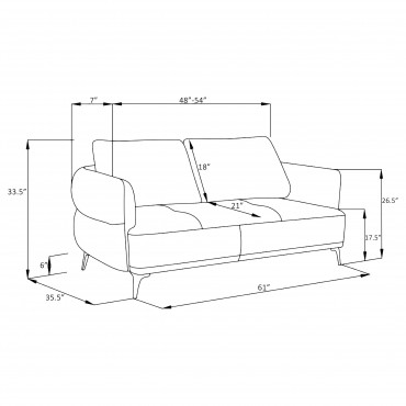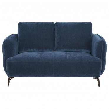 Enhance your living space with this elegant loveseat, designed to capture attention from every angle. With its beautifully curved design and alluring back profile, this loveseat offers both style and comfort. The deep blue upholstery adds a touch of luxury, while the black nickel legs provide a modern and sturdy foundation. This loveseat is perfect for creating an inviting atmosphere in any room, combining contemporary aesthetics with cozy seating.