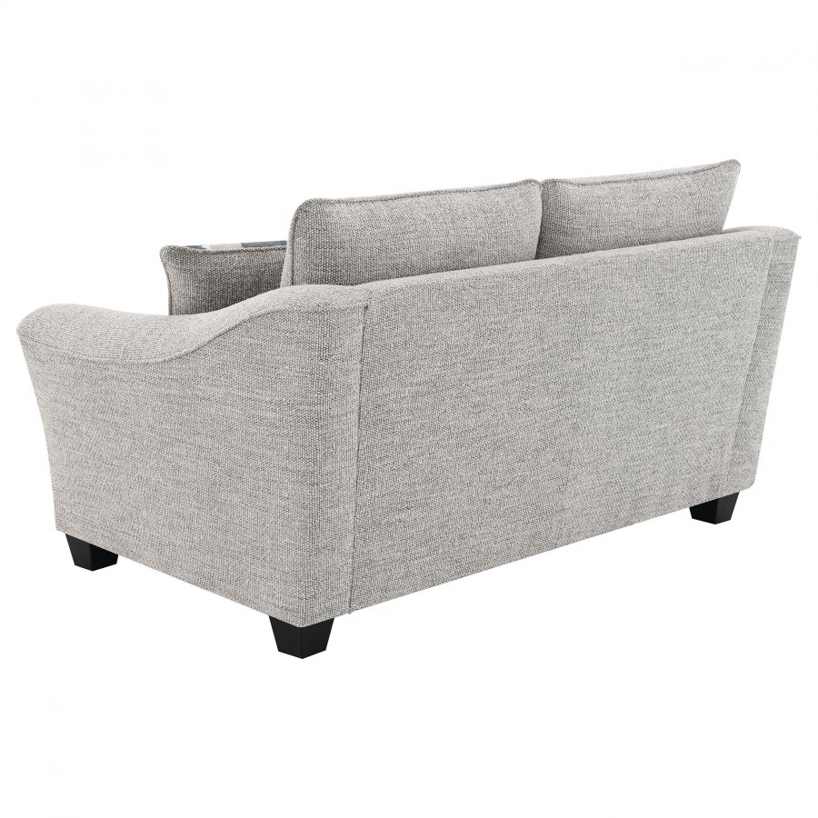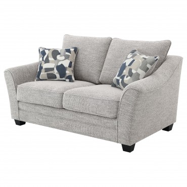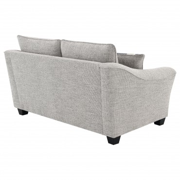 Instill a sense of comfort and inviting elegance in your living space with this well-tailored modern loveseat from our sofa collection. Showcasing a wonderfully textured boucle fabric in a multidimensional gray hue, it's not only contemporary and flexible but also perfect for camouflaging wear. The loveseat features sloped arms, boxed seat cushions, and tall back pillows, all finished with a welt trim, blending beautifully with existing furniture and decor. Its impressive comfort is augmented by foam cushions and the inviting look of gently sloping armrests. Resting on tall block legs for a sturdy foundation, this loveseat is a perfect addition to any casual living space, and can be further enhanced with accent pillows or a throw for a dose of color.