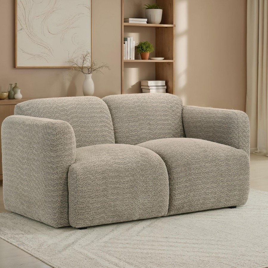 This sculpted loveseat brings bold softness and inviting texture to modern spaces. Its low-profile frame is wrapped in richly textured fabric with a cozy, tactile feel. Rounded track arms and a smooth, contoured silhouette create a cocoon of comfort. High-quality foam and pocket coil seating ensure long-lasting support without sacrificing softness. With a clean, minimal form, this two-seat loveseat adds warmth and refined presence to any living room or lounge.