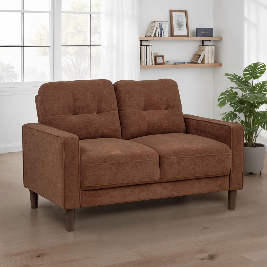 Designed for smaller spaces without sacrificing comfort, this modern loveseat blends refined lines with cozy charm. Slim track arms trimmed in cord welt frame grid-tufted back cushions for a tailored touch, while pocket coil seating offers lasting support. Wrapped in softly textured upholstery and lifted on tapered legs, it brings ease and structure to studio apartments, reading corners, or compact living rooms.