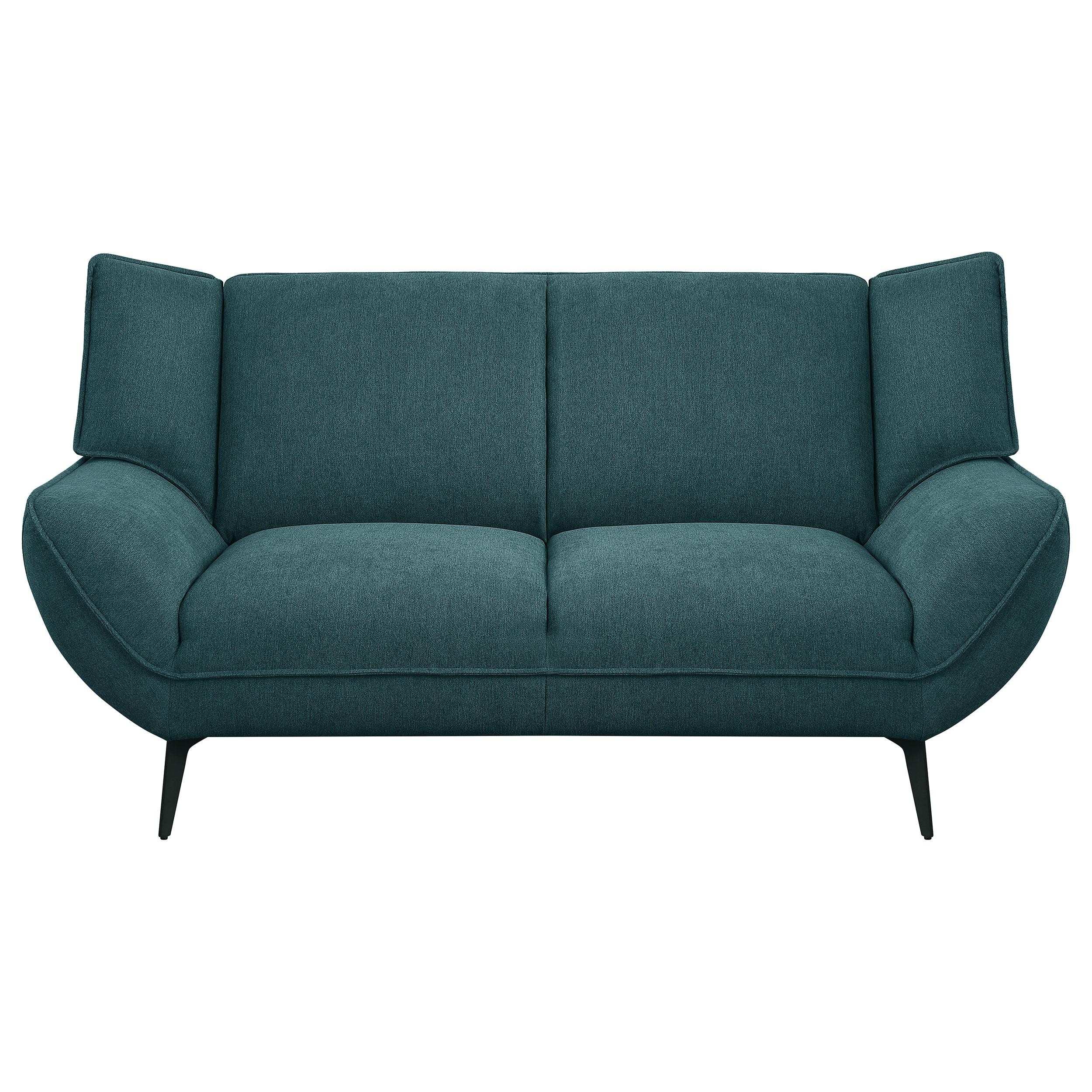 Your casual living space is ground zero for style and comfort with a two-seater loveseat echoing mid-century modern design elements. This comfy and stylish loveseat is a great choice for more compact spaces and small apartments, or as a partner to a sofa. Gorgeous teal fabric upholstery opens up possibilities for a lush palette choice. Flared arms and wing backs attach to non-removable seat and back cushions. Tapered black metal legs coordinate with the beautiful teal upholstery.