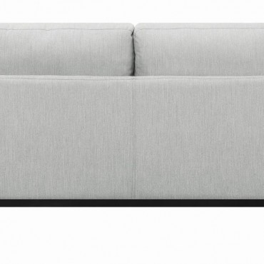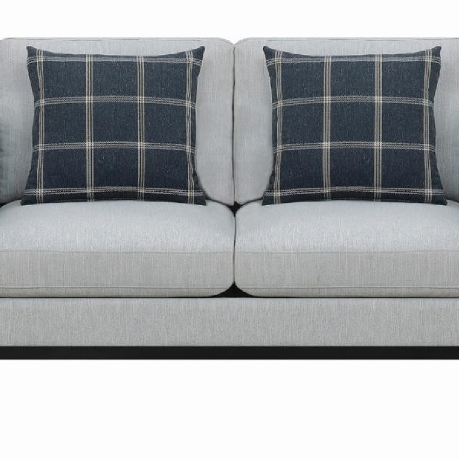 This loveseat is the ultimate in casual comfort. With a soft, plush back and seat cushions, it offers hours of soothing relaxation. Its lovely, muted shade of light grey blends effortlessly with a variety of color palettes. Two dark accent pillows with a pleasing plaid pattern provide a lovely contrast to its frame. This loveseat is a beautiful enhancement to any living room's decor.