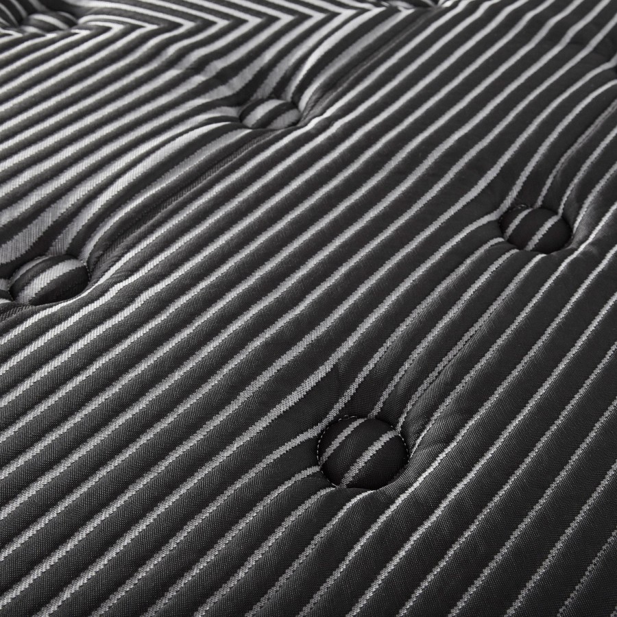 Surrender to the embrace of this premium mattress, a sanctuary of rest where cutting-edge technology meets time-honored craftsmanship, proudly made in the USA. Draped in an icy black cover, this mattress invites a cooler slumber, its breathable fabric expertly designed to wick away moisture. Beneath, the visco foam, enriched with copper, gel, silver, and graphite, contours to your form, offering an unrivaled pressure relief that whispers of dream-filled nights. This foam is Certi-Pur-US certified, ensuring it meets rigorous standards for emissions, content, performance, and durability. The robust high-density firm comfort foam supports not just the spine, but every dawn's ambitions, while the perimeter edge wrapped coils promise a tranquil sea for sleep, undisturbed by the movements of your companion.