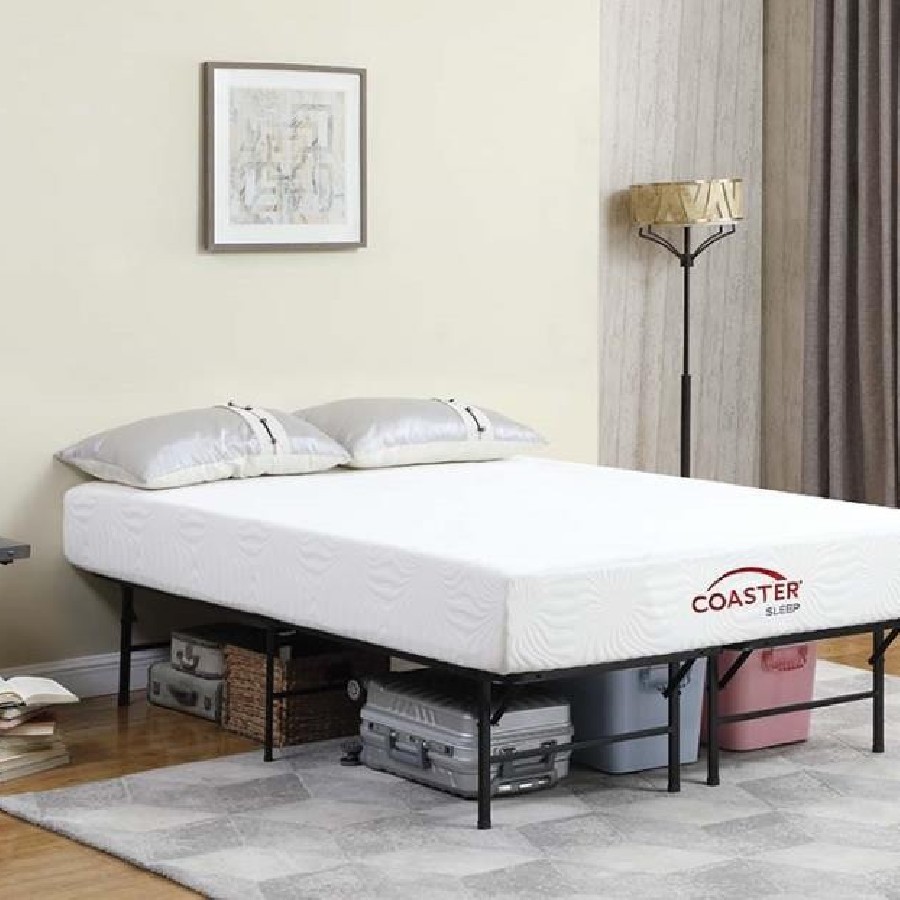 This simple transitional platform bed frame is both supportive and minimal. Easily storable and capable of folding, it can be pulled out when company visits. Its heavy gauge steel construction offers extra support, and has a black powder coated finish to protect against nicks while looking sleek and stylish. This bedframe can also be used as a standalone bed or to support a mattress to replace a box spring foundation. Included in this style are a variety of sizes to suit every mattress size.