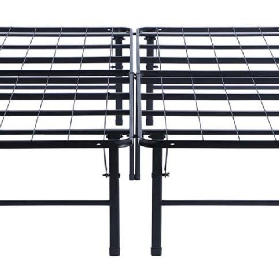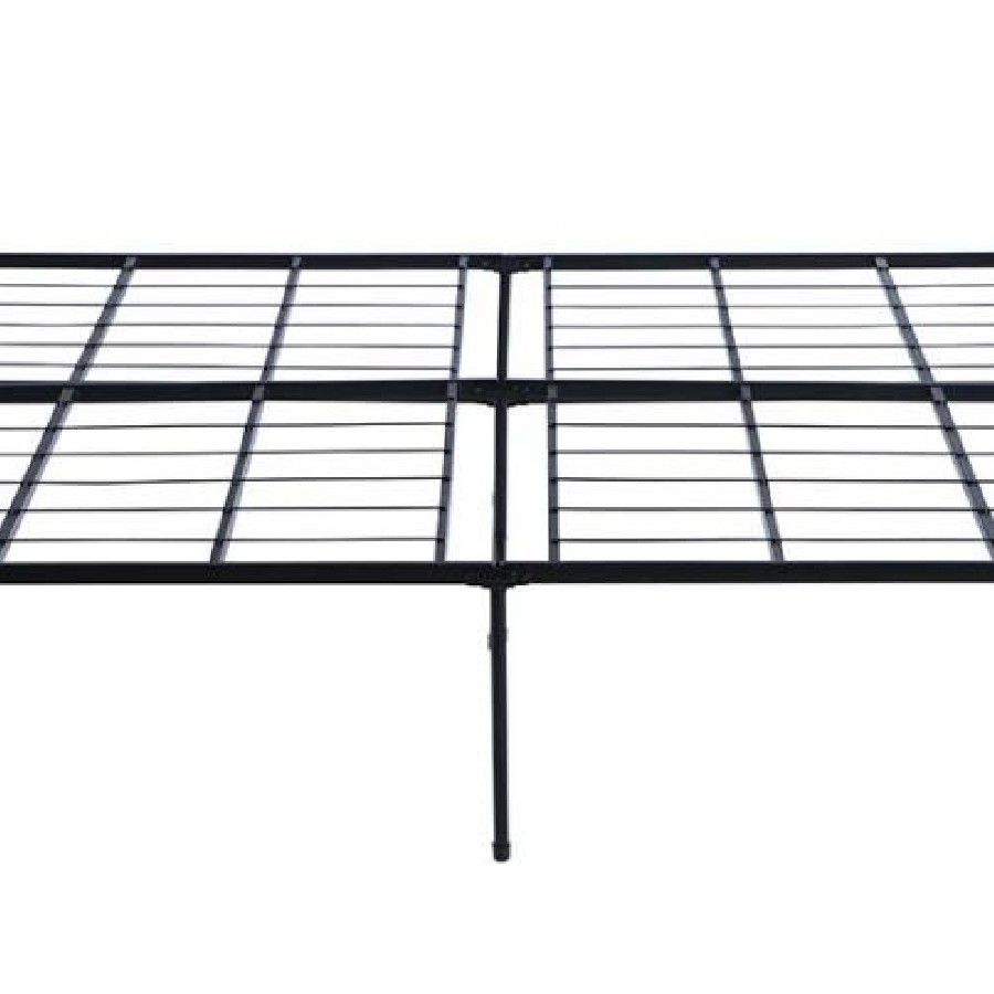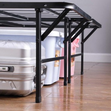 This simple transitional platform bed frame is both supportive and minimal. Easily storable and capable of folding, it can be pulled out when company visits. Its heavy gauge steel construction offers extra support, and has a black powder coated finish to protect against nicks while looking sleek and stylish. This bedframe can also be used as a standalone bed or to support a mattress to replace a box spring foundation. Included in this style are a variety of sizes to suit every mattress size.