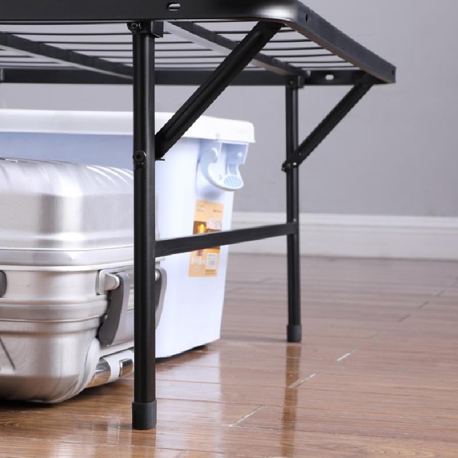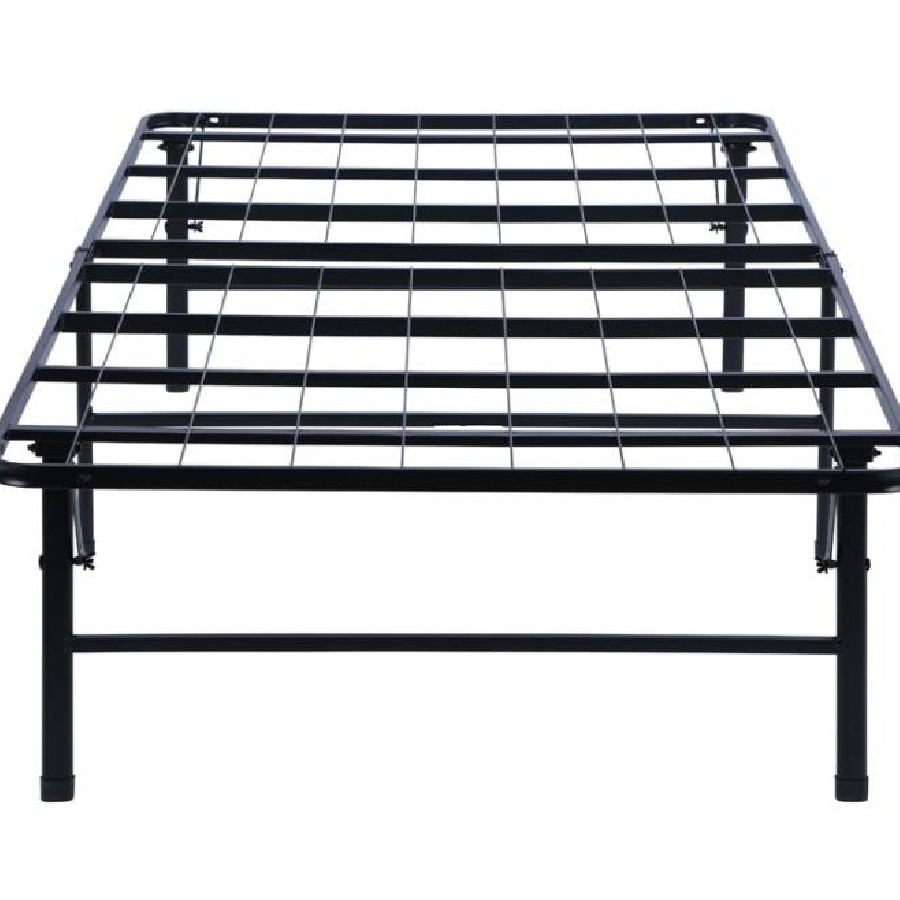 This simple transitional platform bed frame is both supportive and minimal. Easily storable and capable of folding, it can be pulled out when company visits. Its heavy gauge steel construction offers extra support, and has a black powder coated finish to protect against nicks while looking sleek and stylish. This bedframe can also be used as a standalone bed or to support a mattress to replace a box spring foundation. Included in this style are a variety of sizes to suit every mattress size.