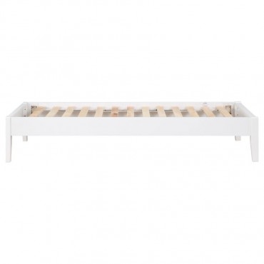 Designed for versatility, this universal platform bed offers a sturdy foundation with a fully slatted, mattress-ready design. Crafted from durable rubberwood and pine, it ensures lasting support and stability. Pre-drilled holes on the back legs allow for effortless headboard attachment, providing customization options to suit various bedroom styles. With its clean lines and solid construction, this bed serves as a functional and stylish base for any sleep space.