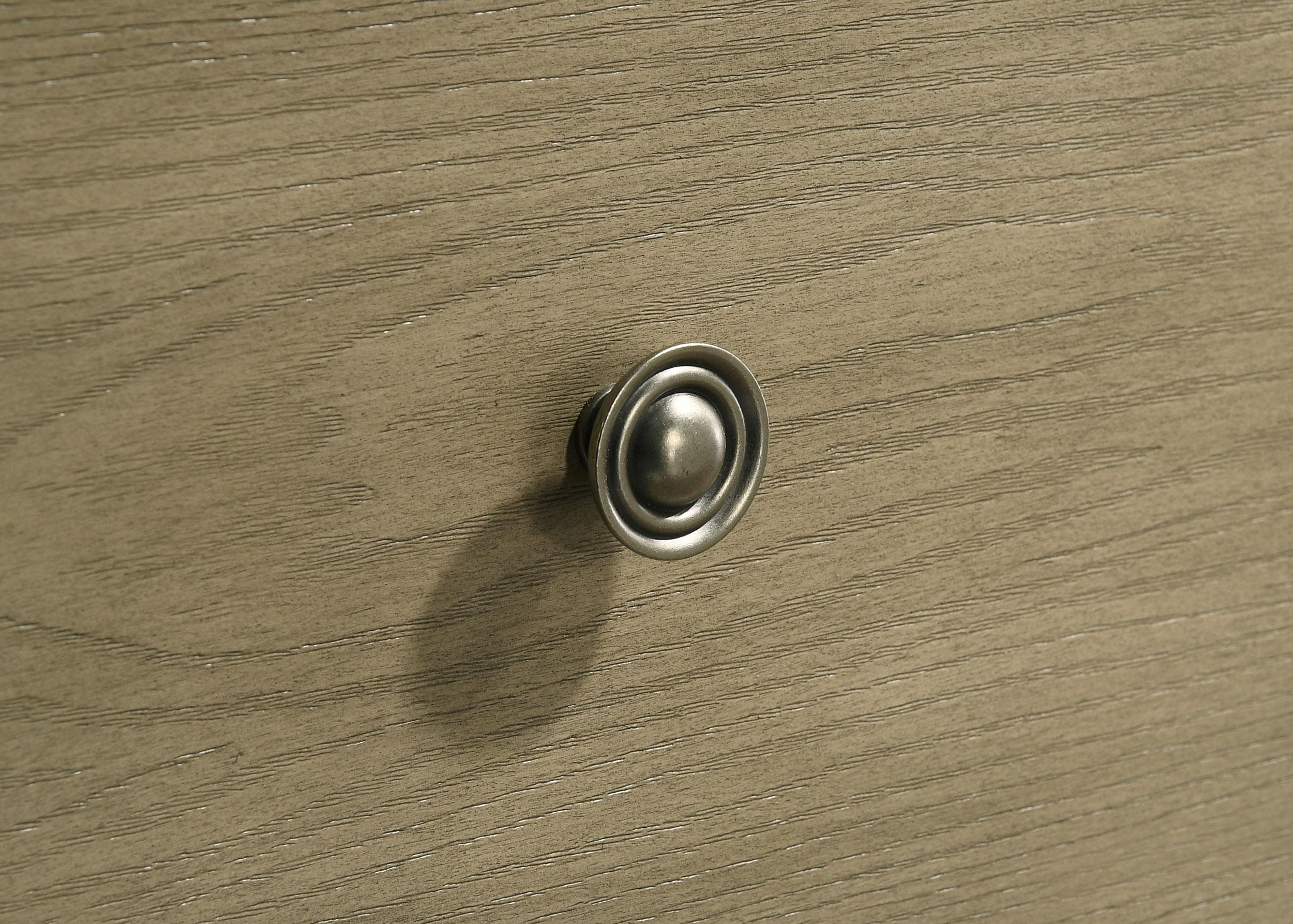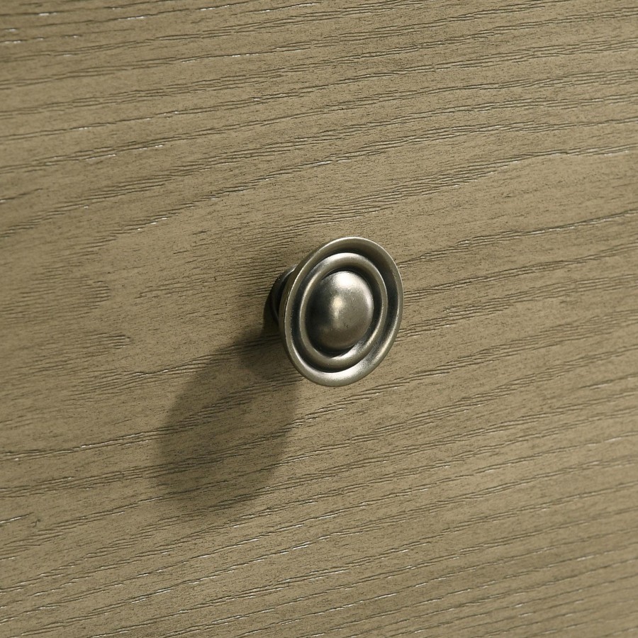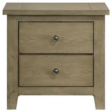 Infuse your bedroom with understated elegance through this two-drawer nightstand in a warm vineyard oak finish. Built from solid rubberwood and engineered wood veneer with embossed oak grain, it delivers timeless style and lasting strength. Antique nickel-finished metal knob offer subtle contrast, while the spacious drawers glide open on heavy-duty metal ball bearing extension slides. Its clean lines and compact size make it a practical and stylish bedside companion for transitional spaces.