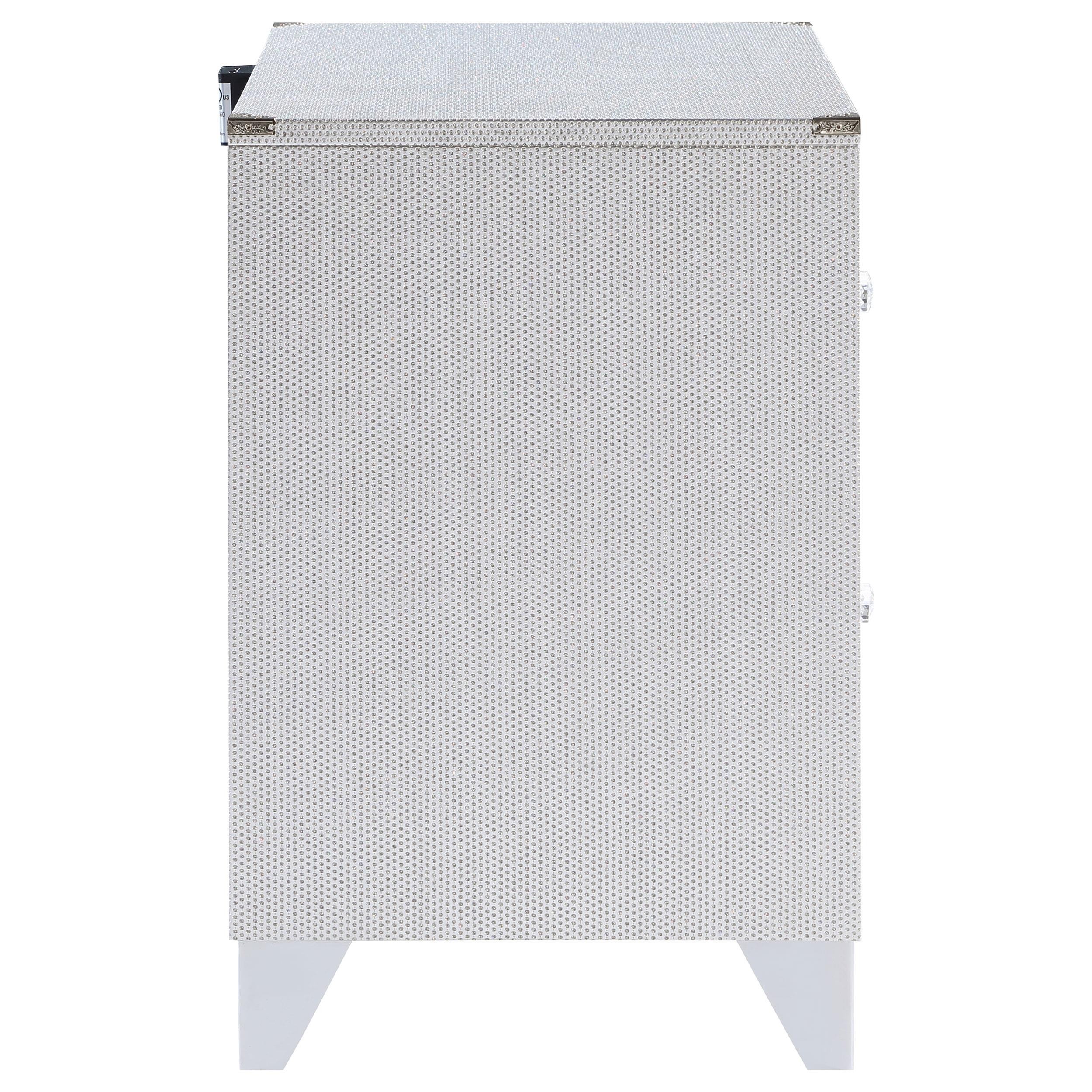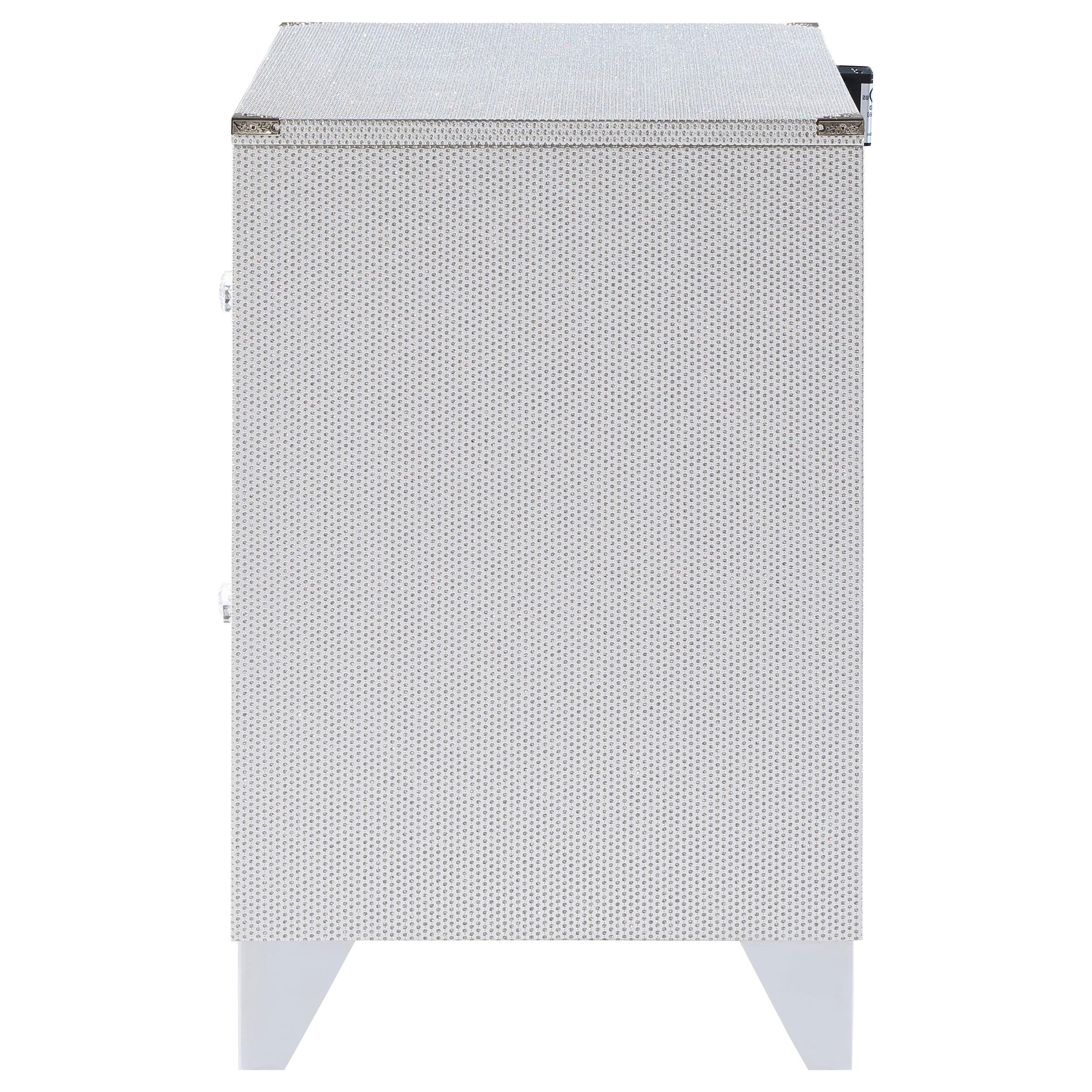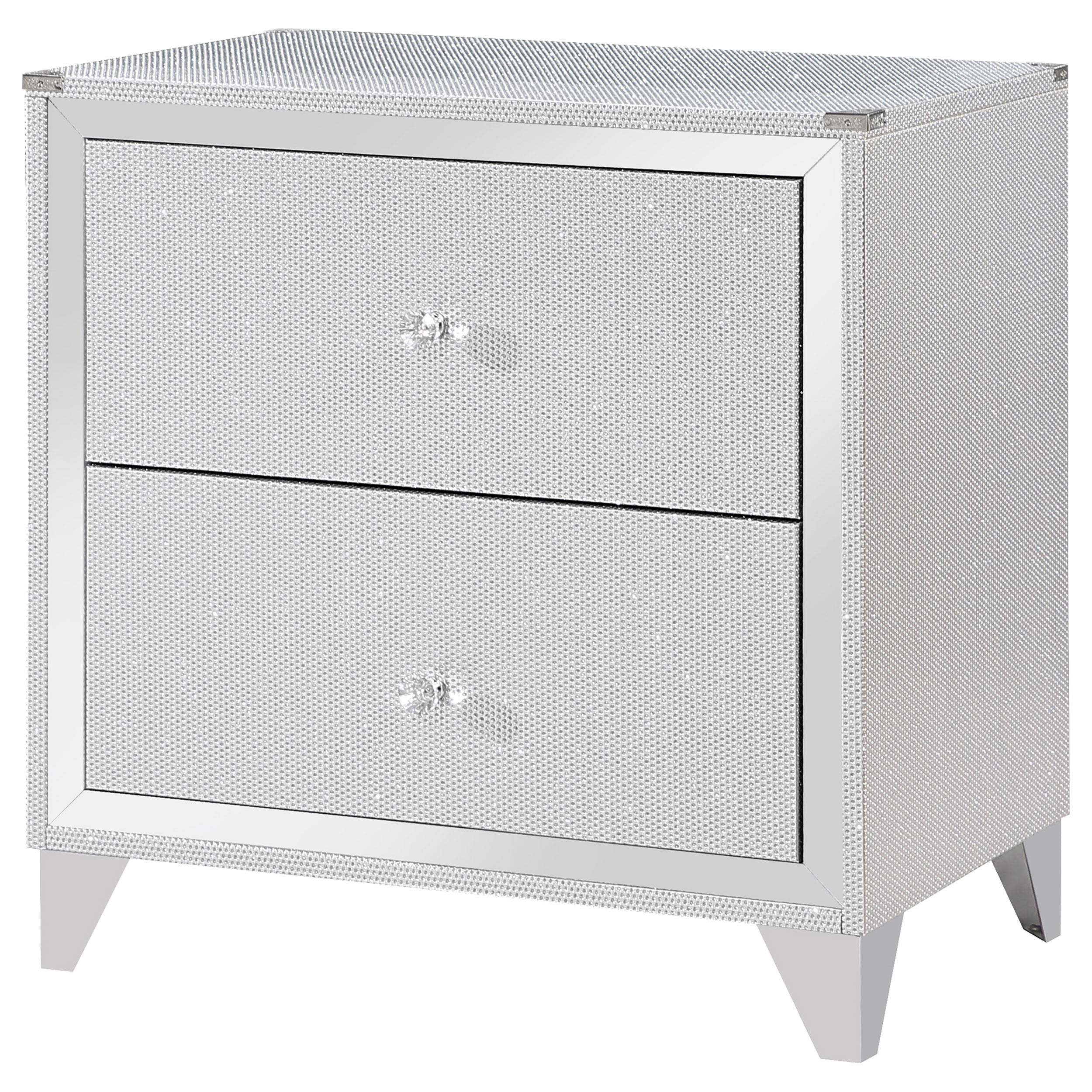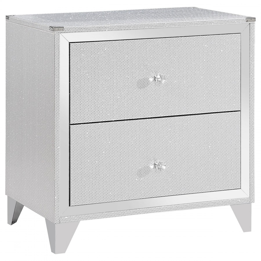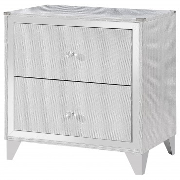 Elevate your suite with the addition of our luxurious 2-drawer nightstand. This exquisite piece features glimmering accents, mirror trim, and acrylic crystal ball pulls, creating a glamorous and sophisticated look. Beyond its stunning aesthetics, this nightstand also offers functionality with its two spacious drawers. Add a touch of opulence to your bedroom with this beautiful and functional nightstand, combining style and practicality effortlessly.