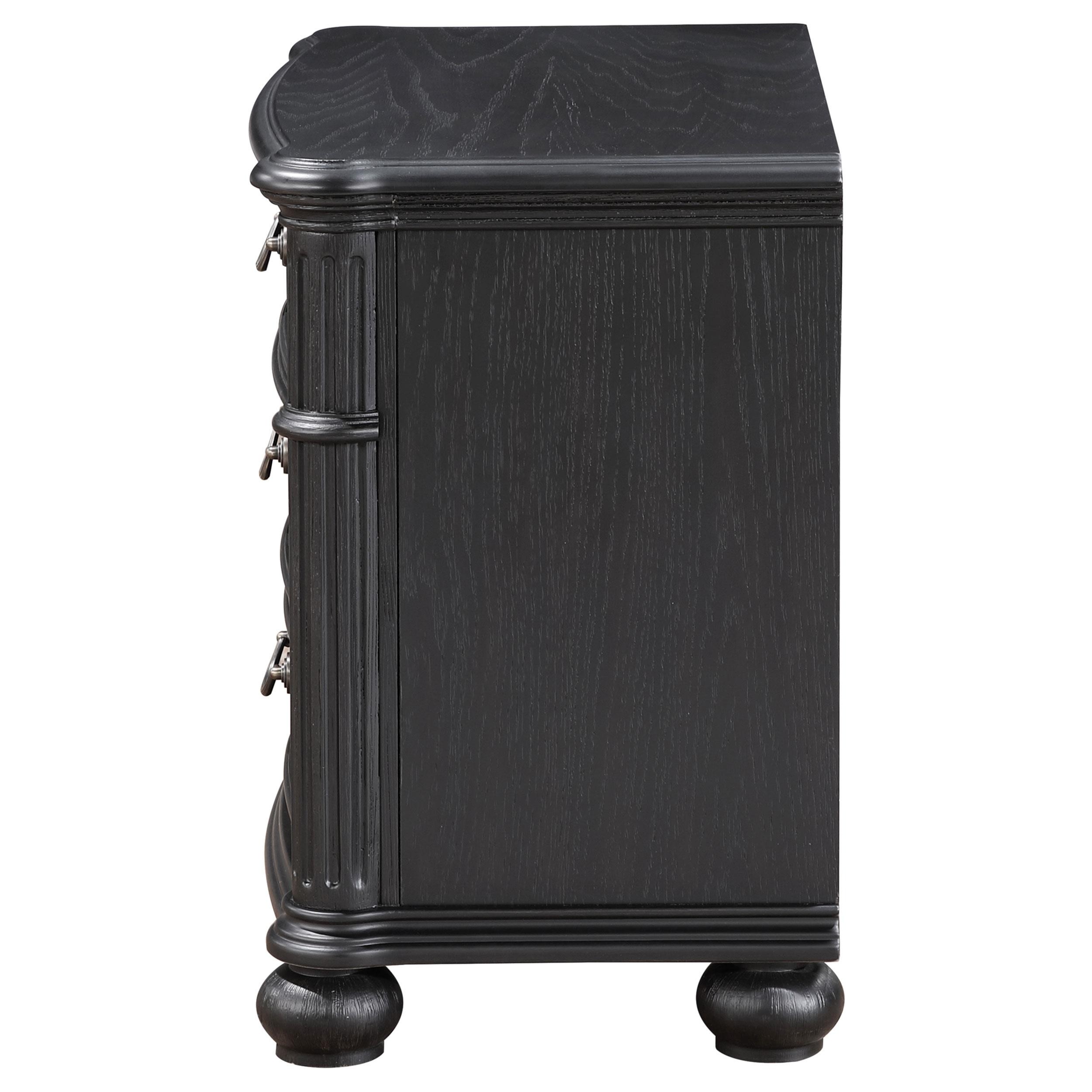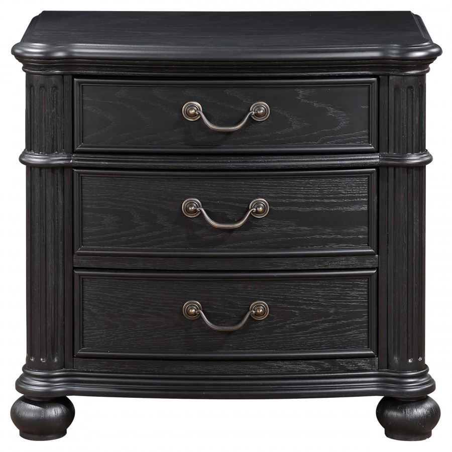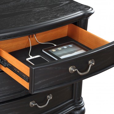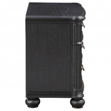 Discover the perfect blend of functionality and elegance with this nightstand, featuring three spacious drawers to keep your essentials organized. The top drawer, lined with soft felt, provides a gentle nest for your delicate items, while ingeniously designed grooves at the back allow for discreet charging cable access, keeping your devices powered and within reach. This nightstand, with its black finish and timeless hardware, is not only a storage solution but a sophisticated addition to your bedroom sanctuary.