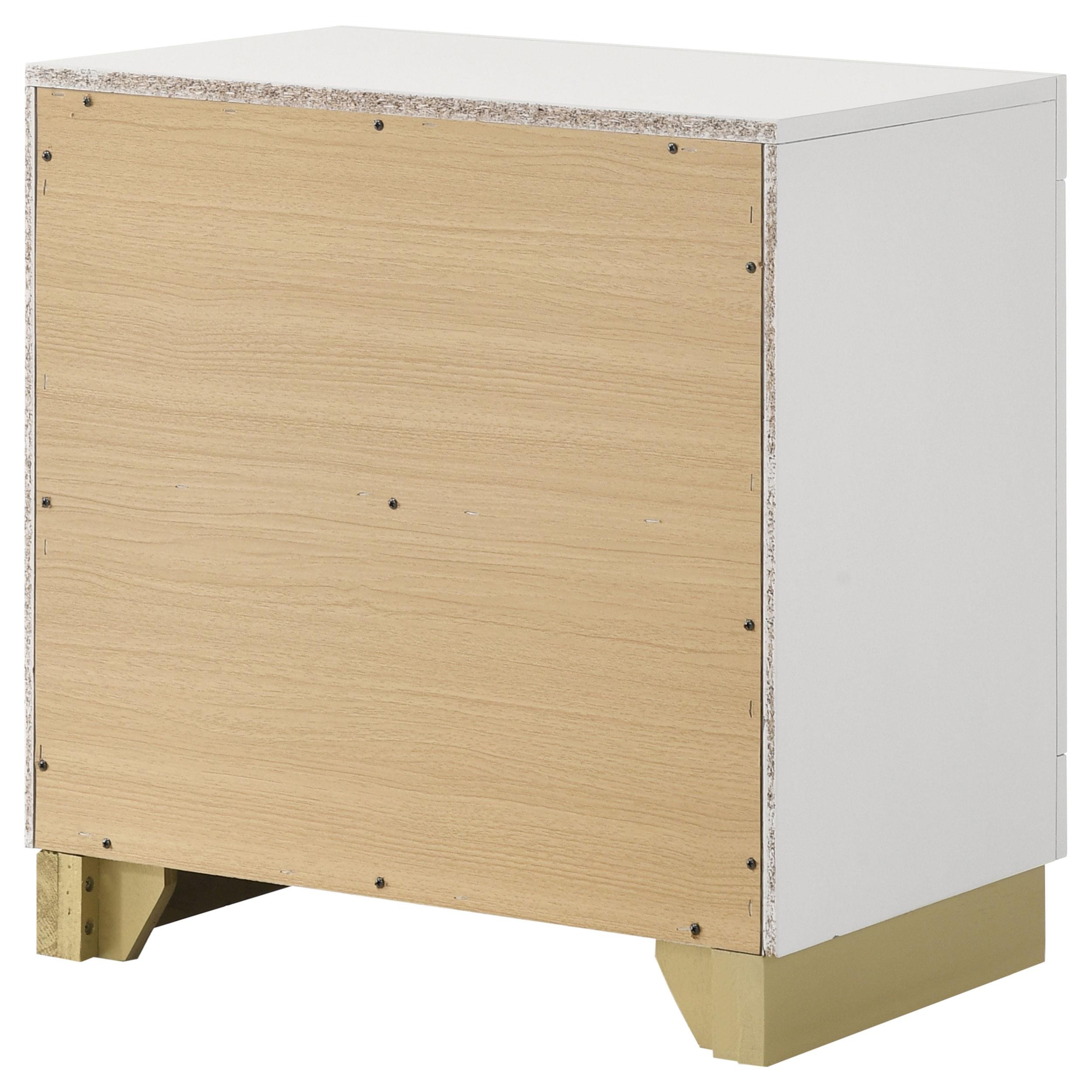 Put the finishing touches on a chic bedroom with a modern two-drawer nightstand. In white with metallic gold embellishments, it's the perfect solution for nighttime storage. Drawer fronts feature rounded corners for a softened look and feel. Use the top for a reading lamp or personal decor that brings inviting ambiance. Drawers hold up to 44 pounds each, perfect for everything from personal items to books and other accessories.