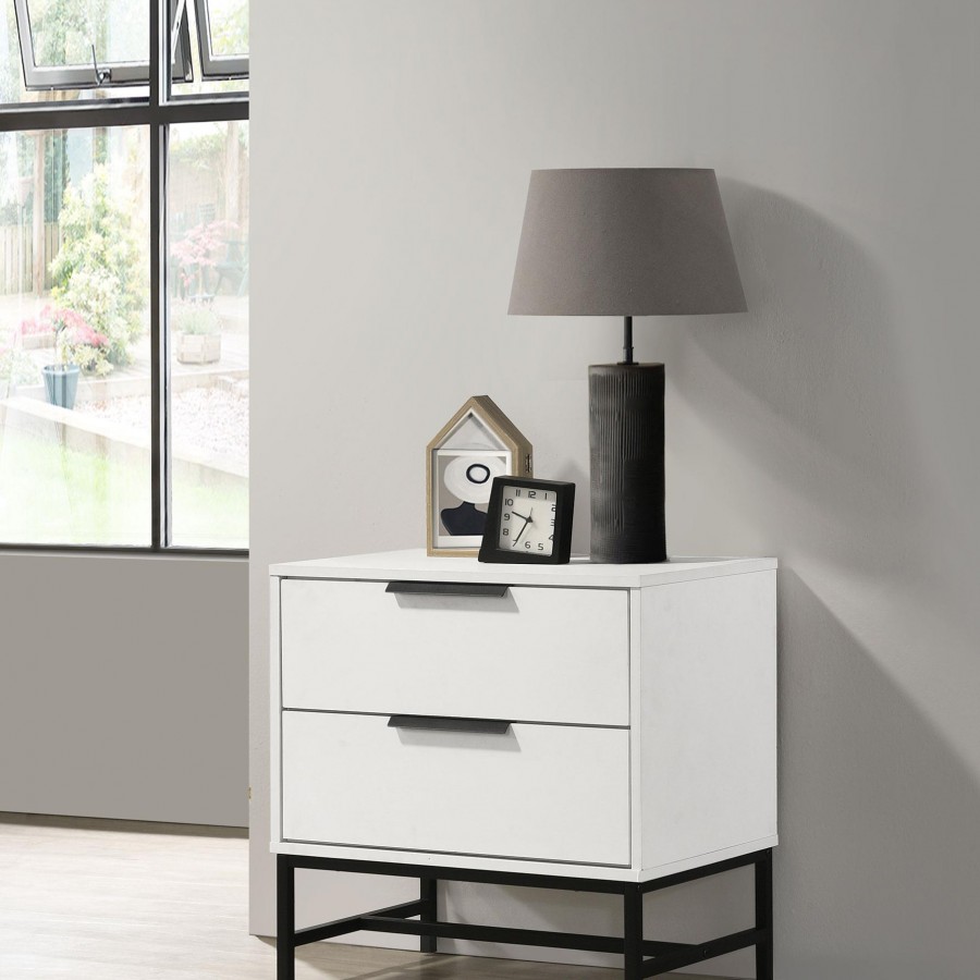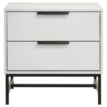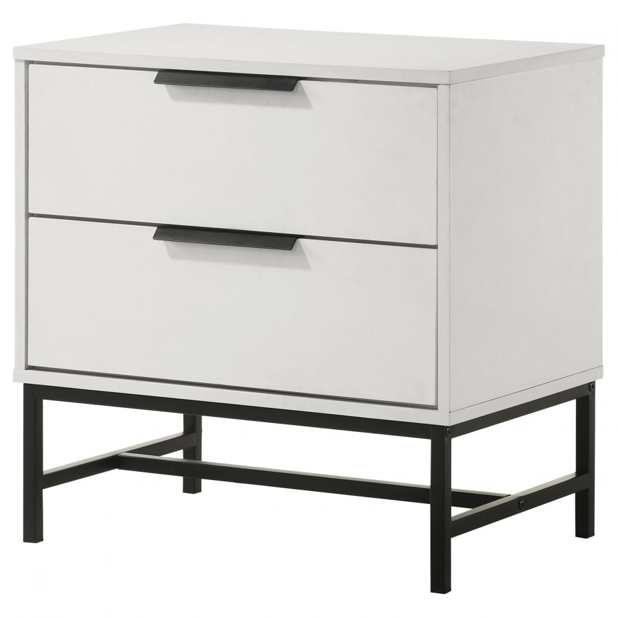 Put a fresh spin on bedside storage with a modern two-drawer nightstand. It shows off a clean, straight-lined silhouette, complete with easy drawers for nighttime essentials and personal items. Its wide top is big enough for a clock, reading lamp, and other items, creating a stylish display in your contemporary bedrooms. The nightstand is augmented with a black finish base with slim, straight lines, and bar pulls, adding appealing contrast and dimension. Choose this nightstand for a sleek, simple look in a minimalist space.