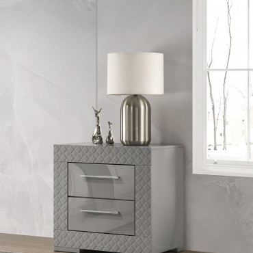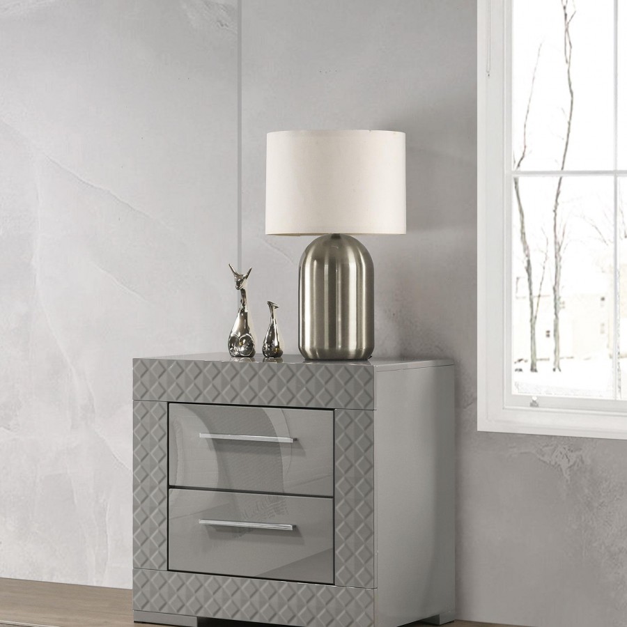 Ives 2-drawer Nightstand Bedside Table Grey High Gloss