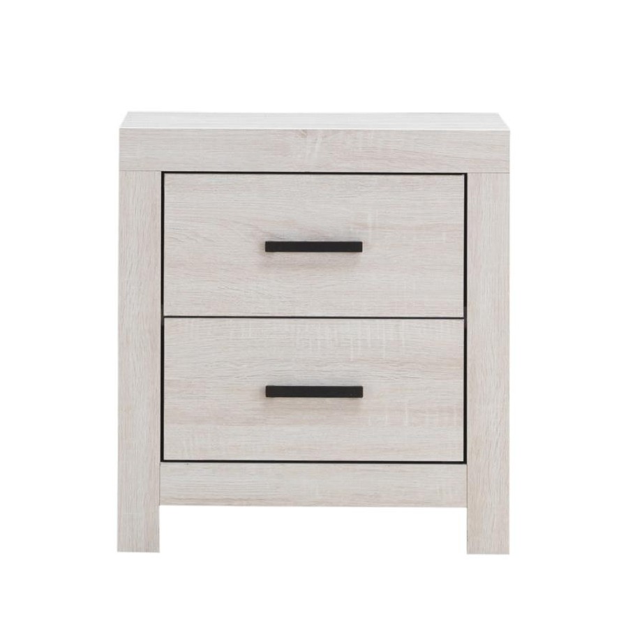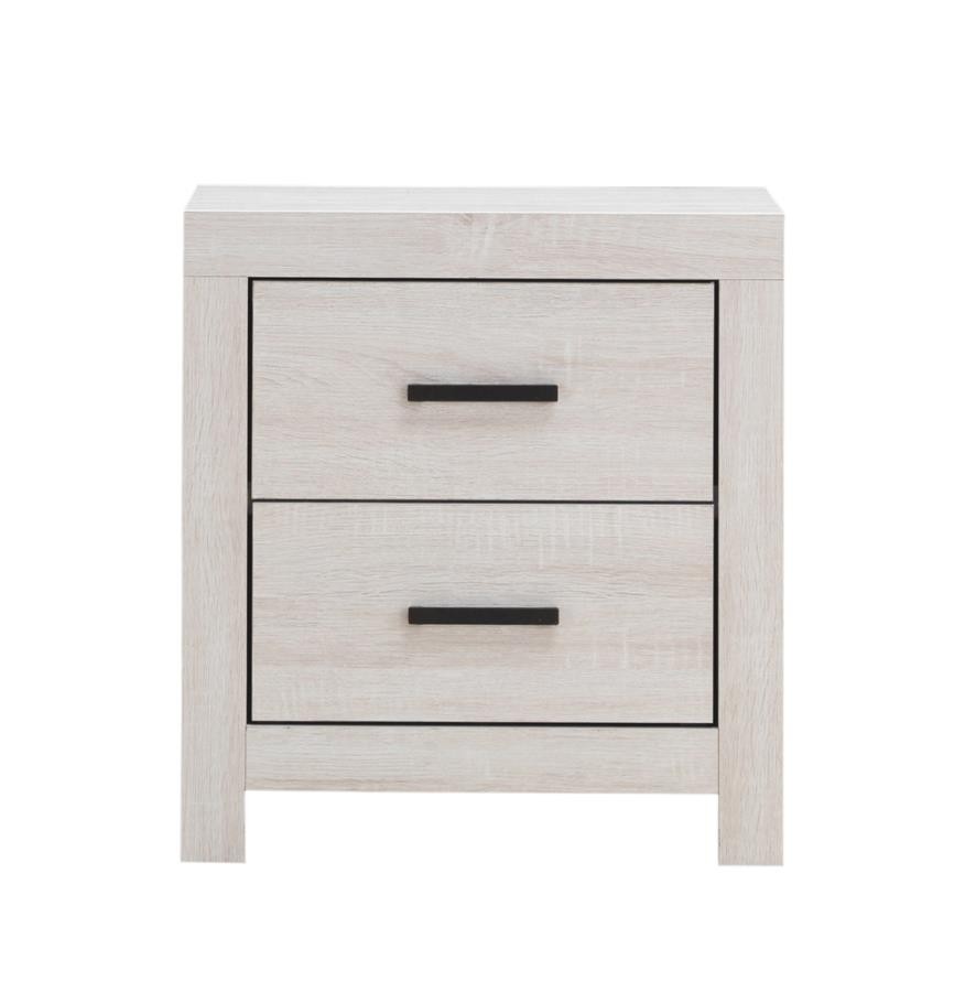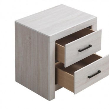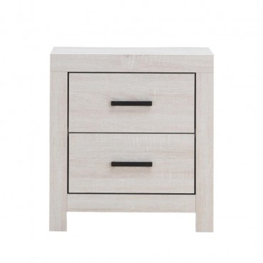 This two-drawer nightstand brings modern style and practical storage to the bedside. Its clean-lined frame complements contemporary spaces, while two spacious drawers provide room for nighttime essentials. Dark bronze handles contrast beautifully against the engineered wood construction and durable laminate veneer. Designed for everyday use, this nightstand offers both style and function in a compact footprint.