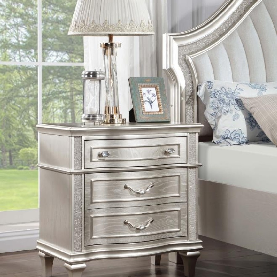 Evangeline 3-drawer Nightstand Silver Oak