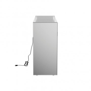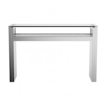 Add instant glamour with this LED console table featuring mirrored panels, a floating tempered glass top, and shimmering faux crystals. The clean, geometric silhouette offers a contemporary touch, while the silver finish brightens any room. Perfect for entryways or living rooms, this striking piece doubles as functional décor with its built-in lighting and sculptural elegance.