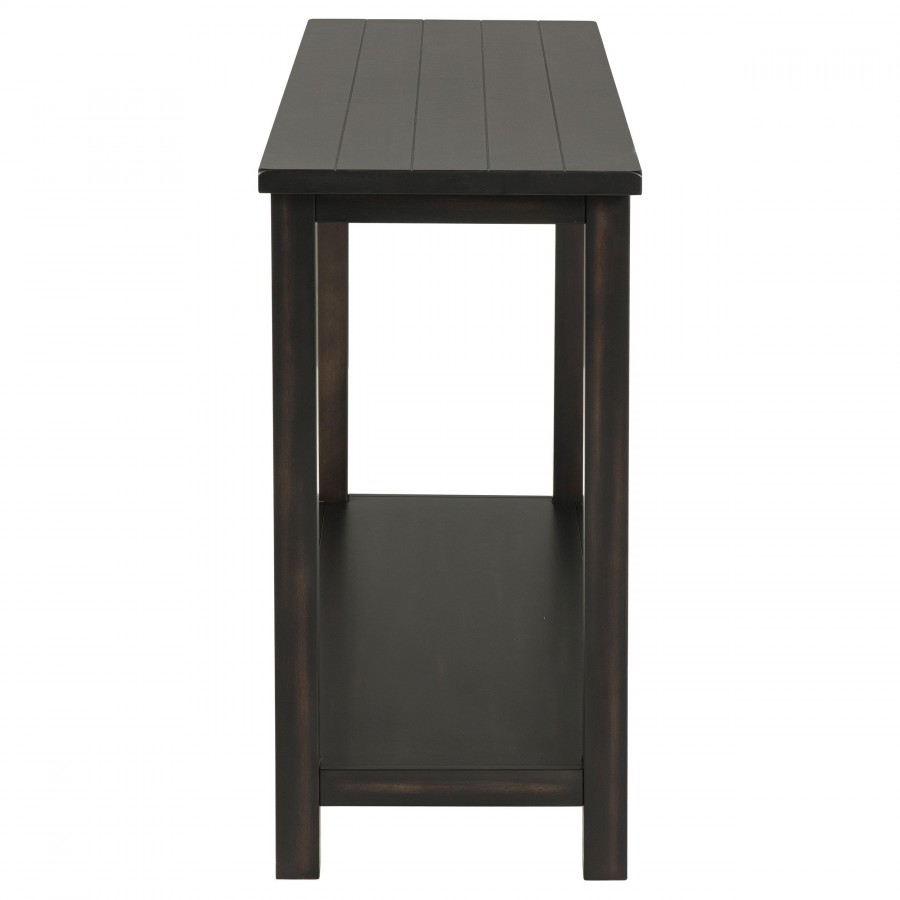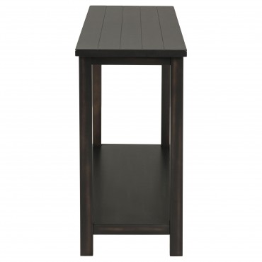 Crafted to complement both entryways and living rooms, this console table showcases a rustic aesthetic and versatile appeal. Fashioned from pine wood and reinforced with engineered wood, its open lower shelf provides ample space for baskets or decorative accents. The slim profile allows easy placement behind a sofa or along a hallway, making it a stylish choice for farmhouse or casual interiors. Enhance your space while keeping essentials close at hand.