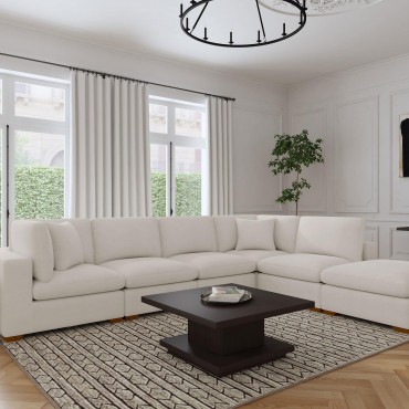 With the easy style of ultra-modern living, the ottoman delivers a streamlined motif with ultimate versatility. A classic layered design offers plush, plump aesthetics merged with a boxy, wood-constructed base. Smooth fabric upholstery covers wood framing, soft to the touch and easily incorporated into a host of distinctive or basic color palettes. Perfect for both contemporary and transitional settings, it is ideal for extra seating, serving with trays, or merely as a place for resting tired feet. Chunky, tapered wooden feet embellish this ottoman with iconic style.