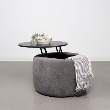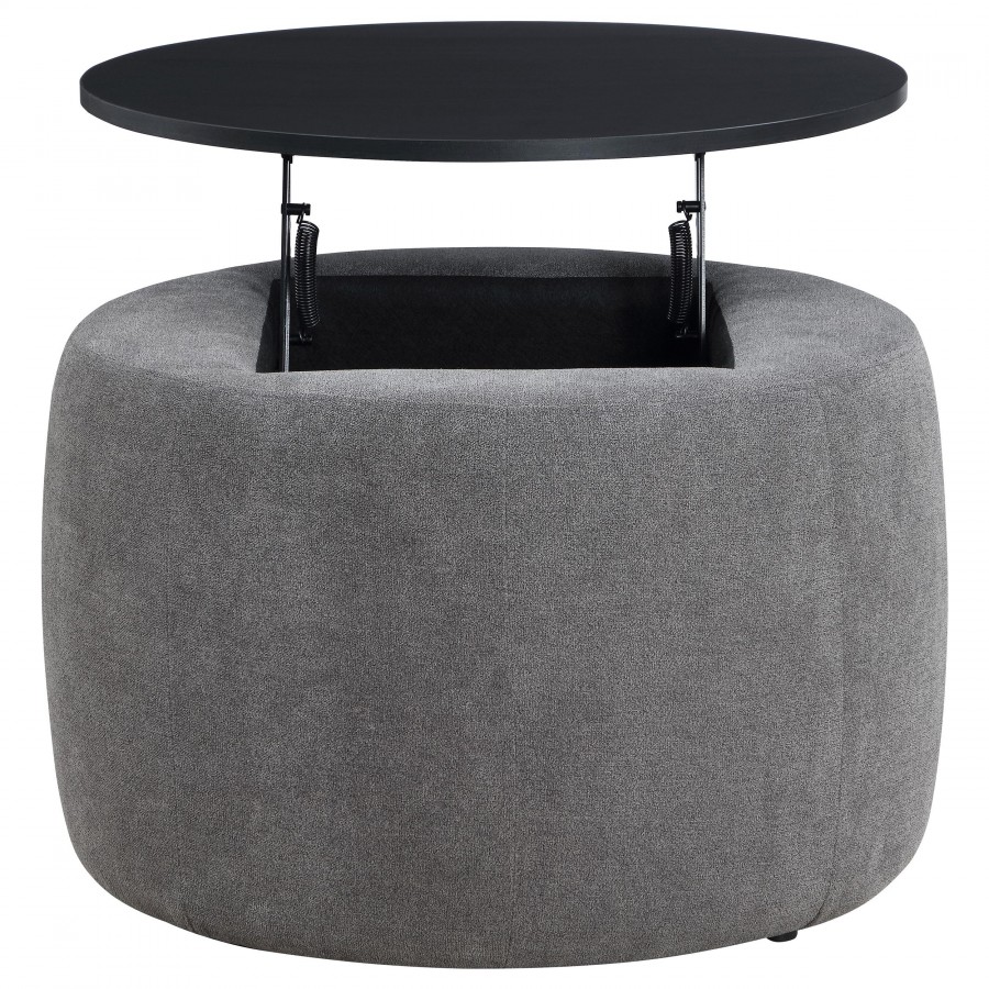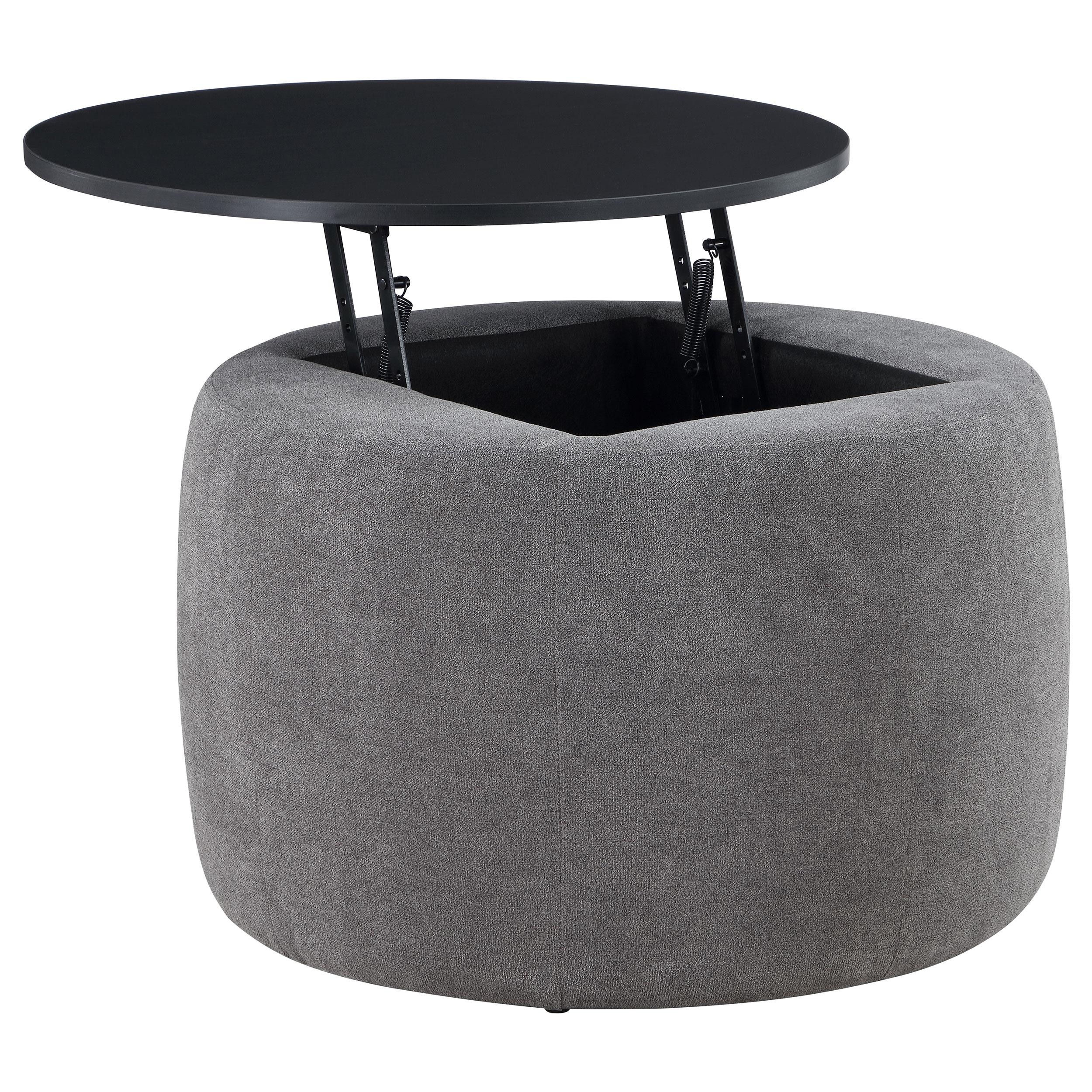 Tesoro Round Upholstered Lift Top Storage Ottoman Grey