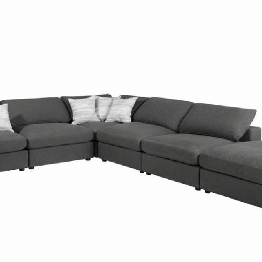 Designed with clean lines and plush comfort, this ottoman in charcoal linen-blend fabric brings refined versatility to your space. Whether paired with a modular sofa or styled on its own, it delivers lasting support and a tailored look. Durable materials and removable cushions make it a practical yet stylish lounging solution.