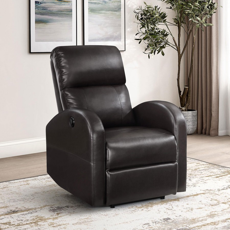 Grant Upholstered Power Recliner Chair Brown