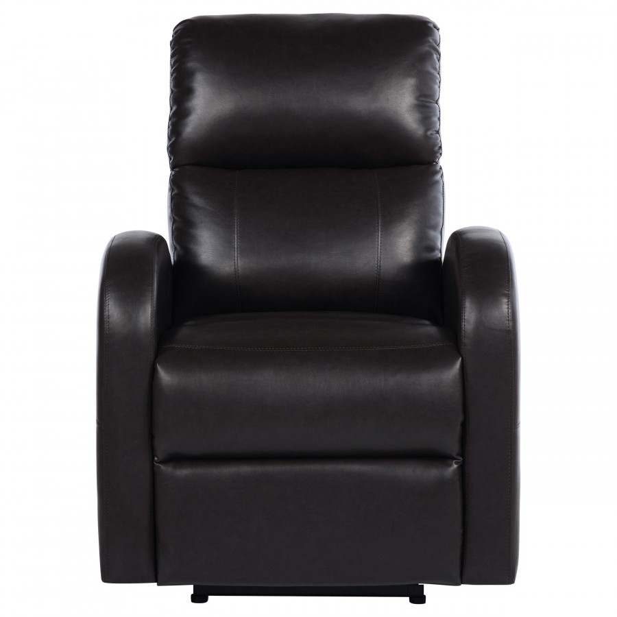 Create the perfect place for stylish lounging with a modern power recliner in your den or living room. It delivers a compact silhouette, offering on-trend style, with neutral faux leather upholstery. Its tall, slim back and plush seat feature foam cushioning, ensuring excellent comfort whether enjoying a movie or catching up with a friend. The power recline functionality is operated with buttons on the right-hand side, ensuring smooth performance. It's complete with track arms with an upward sloping profile perfect for contemporary and modern living spaces.