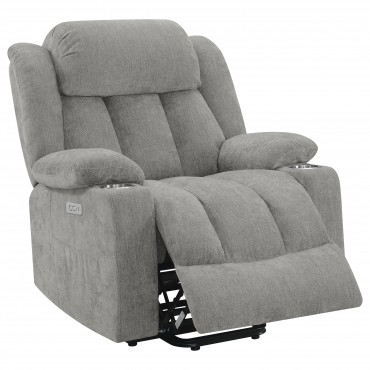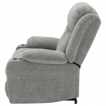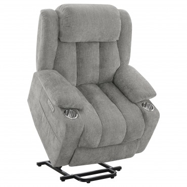 Deliver exceptional comfort and convenience with a modern power lift recliner that allows you to kick back and relax while also assisting you in getting back on your feet. Its plush, overstuffed look is inviting in a living room or den, while contour tufting creates exceptional support for your whole body. The recliner is operated with a power panel that includes simple buttons and a built-in USB port for easy access. The power panel is on the right side when seating and is paired with a soft pocket, perfect for tucking reading materials or a puzzle book. Soft upholstery, pillowtop arms and two cupholders add to the inviting look and feel of this charming recliner.