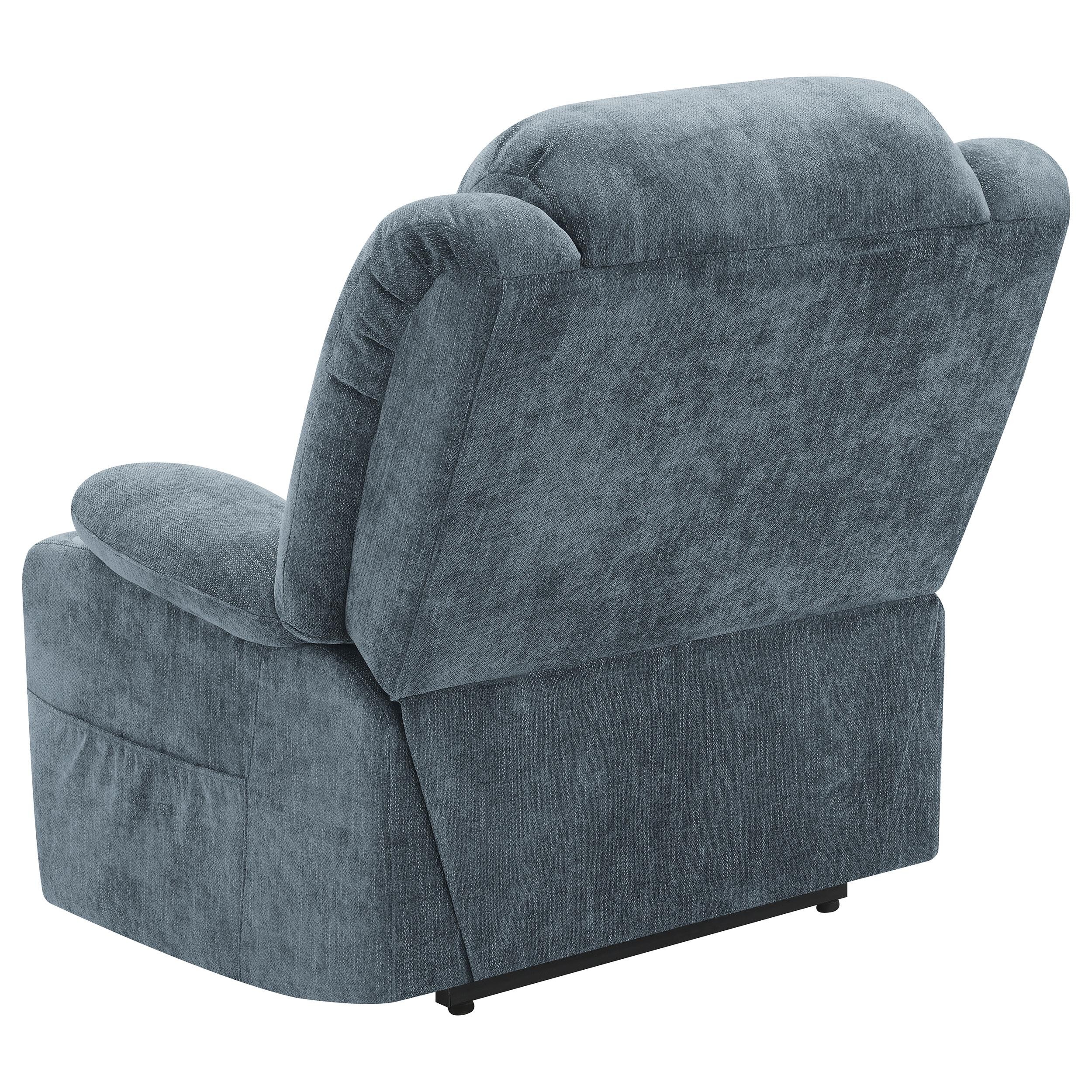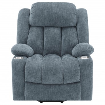 Deliver exceptional comfort and convenience with a modern power lift recliner that allows you to kick back and relax while also assisting you in getting back on your feet. Its plush, overstuffed look is inviting in a living room or den, while contour tufting creates exceptional support for your whole body. The recliner is operated with a power panel that includes simple buttons and a built-in USB port for easy access. The power panel is on the right side when seating and is paired with a soft pocket, perfect for tucking reading materials or a puzzle book. Soft upholstery, pillowtop arms and two cupholders add to the inviting look and feel of this charming recliner.