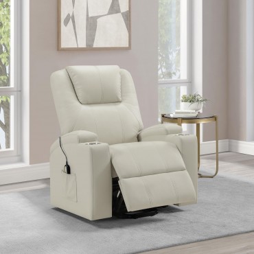 Armstrong Upholstered Power Lift Massage Recliner Ivory