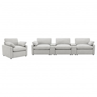 Experience ultimate relaxation with this recliner chair, designed for both comfort and functionality. Featuring a power reclining mechanism with a wall-hugging design, it provides a full recline without requiring excessive space. Plush cushions offer exceptional support, while the modular design allows seamless integration into your existing living room setup or as a standalone piece. Perfect for creating a cozy seating arrangement tailored to your needs.