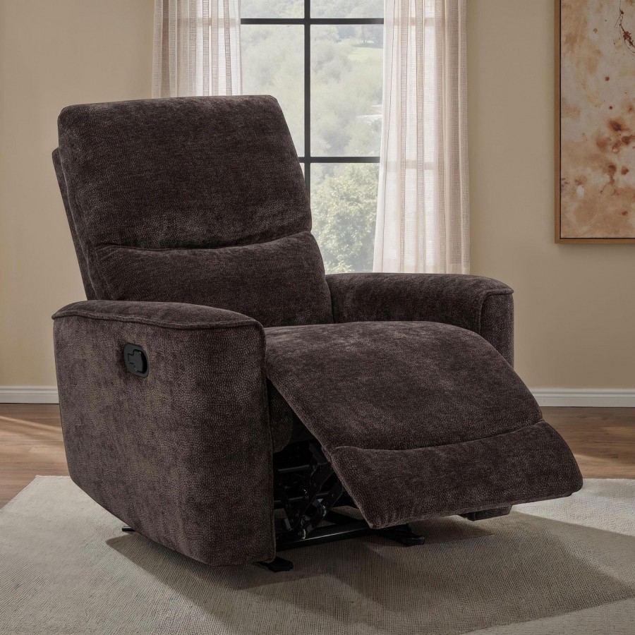 Navarro Chenille Upholstered Glider Recliner Dark Brown