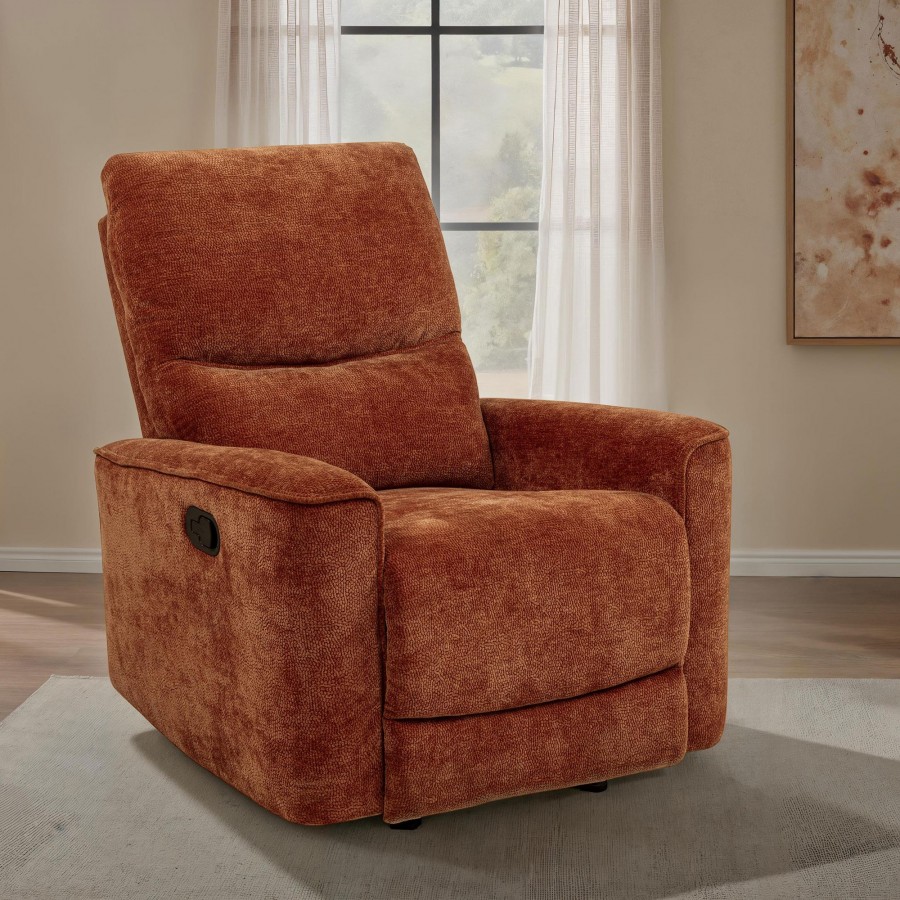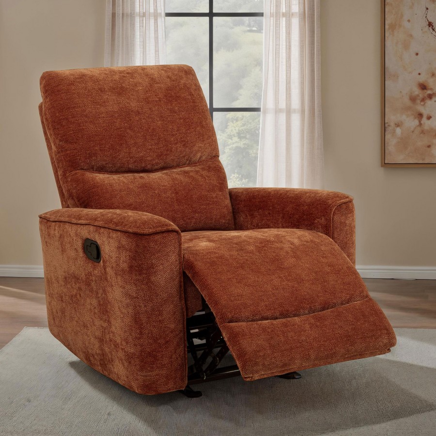 Navarro Chenille Upholstered Glider Recliner Burnt Orange