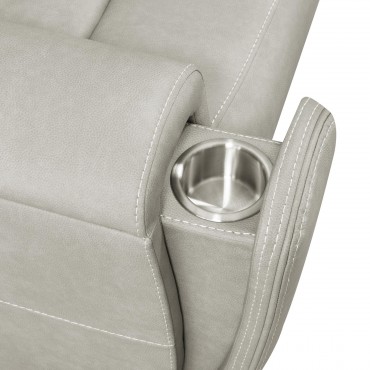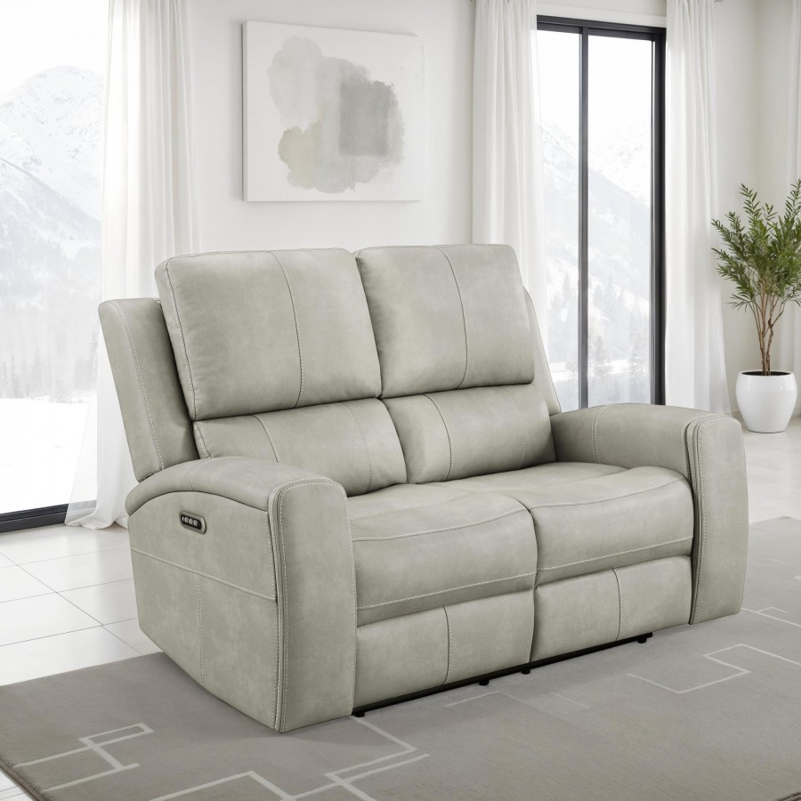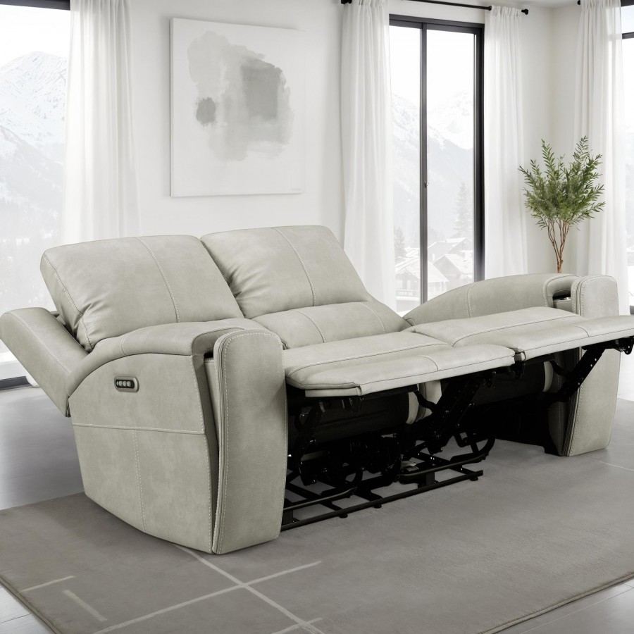 Designed to embrace your every mood, this zero gravity triple power reclining loveseat transforms quiet evenings into indulgent escapes. Rich leatherette envelopes sculpted cushions, tailored with striking contrast stitching for a refined, modern aesthetic. Effortlessly adjust the power recline, headrest, and lumbar support with an integrated control panel, complete with dual USB ports to keep your devices powered and close. Thoughtfully placed armrest cup holders elevate your lounging experience, while a rear AC access port with emergency battery option ensures seamless operation, no matter the moment.