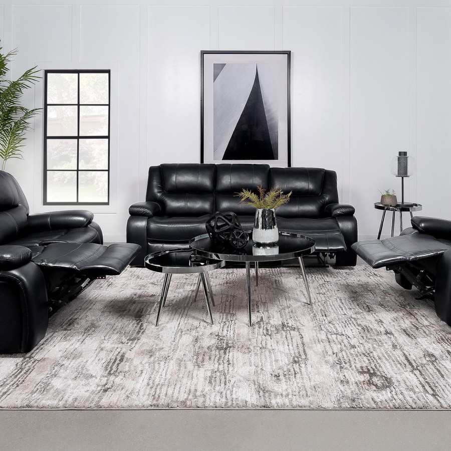 Bold black leatherette upholstery offers the look of luxurious leather with easy-care maintenance as the motion loveseat is versatile and beautiful. Living rooms, family rooms, and media venues become comfort zones with the plump feel and clean design of a classic loveseat built for hours of seating comfort as well as entertaining. Manual reclining is easy and pleasant, allowing a variety of positions for sitting and lounging. Choose this elegant loveseat with pillowy support, as the attached seat and back cushions feature plump foam filling with channeling to target body comfort and padded armrests over rounded sides. Entertain in style and sheer comfort with a motion loveseat that’s also ideal for solo lounging and napping.