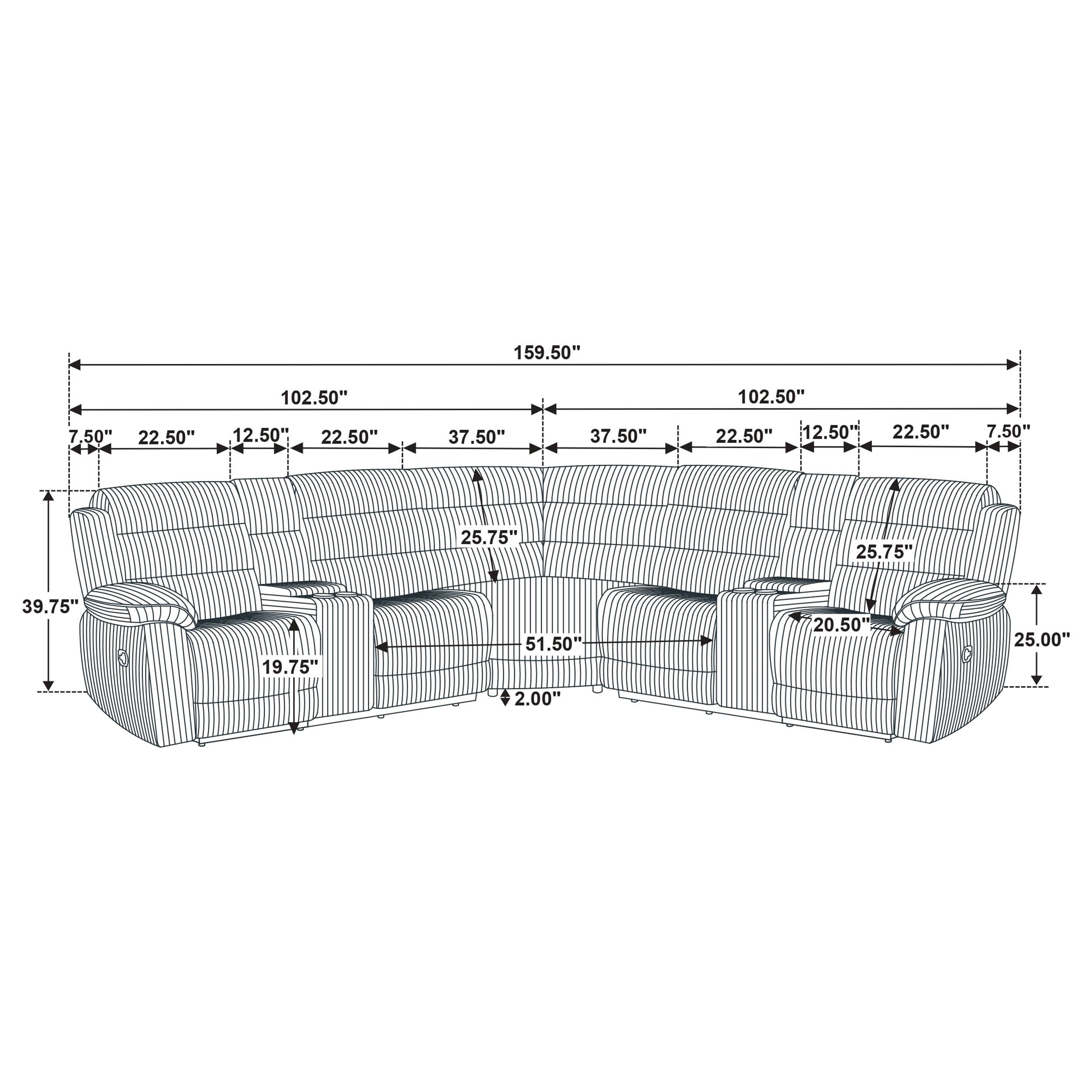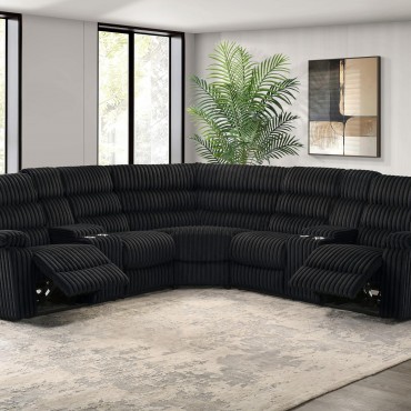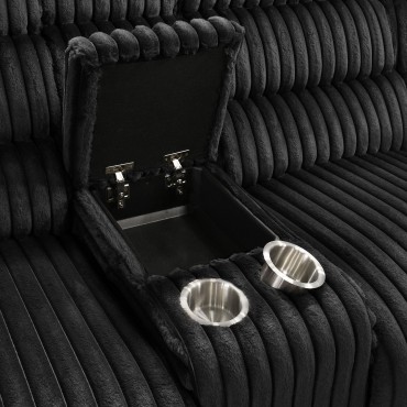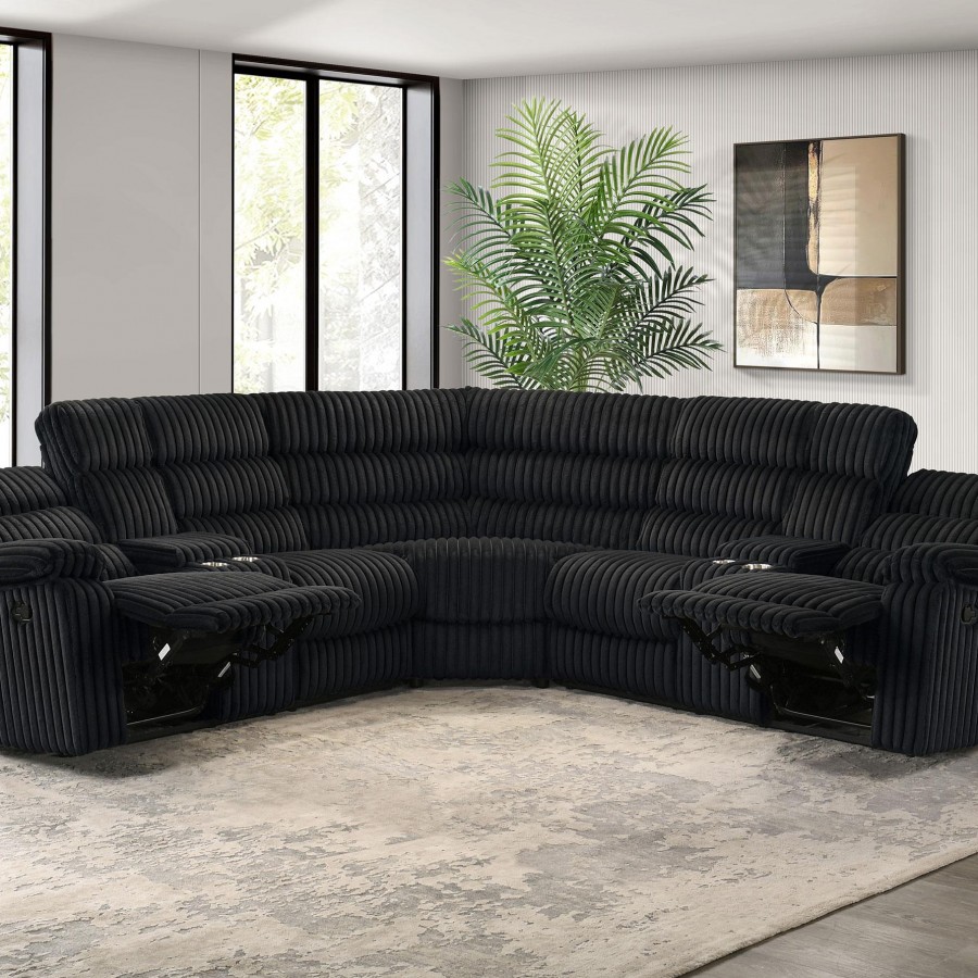Unwind in sculpted comfort with this reclining sectional sofa, where bold texture meets irresistible softness. Wrapped in wide-wale corduroy upholstery, its velvety ribbed finish creates visual depth and an inviting touch. Deep channel tufting enhances the plush profile, while dual consoles offer lift-top storage and stainless steel cup holders. With pocket coil seating beneath every cushion, this sectional is a luxurious retreat for everyday lounging and connection.