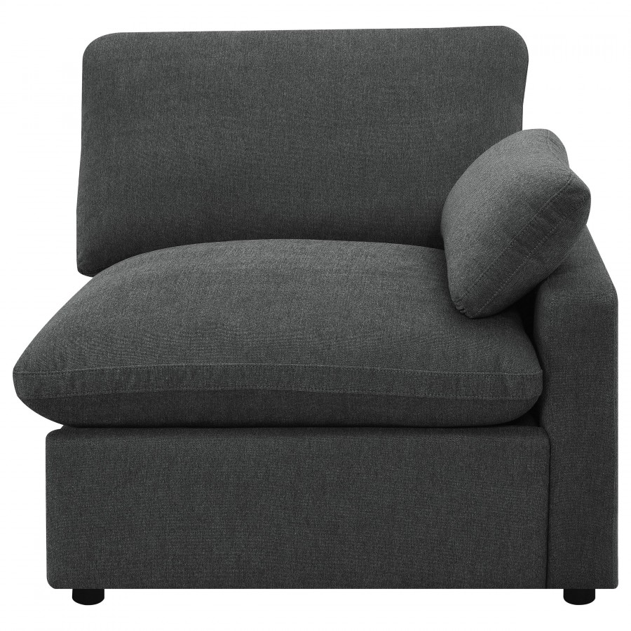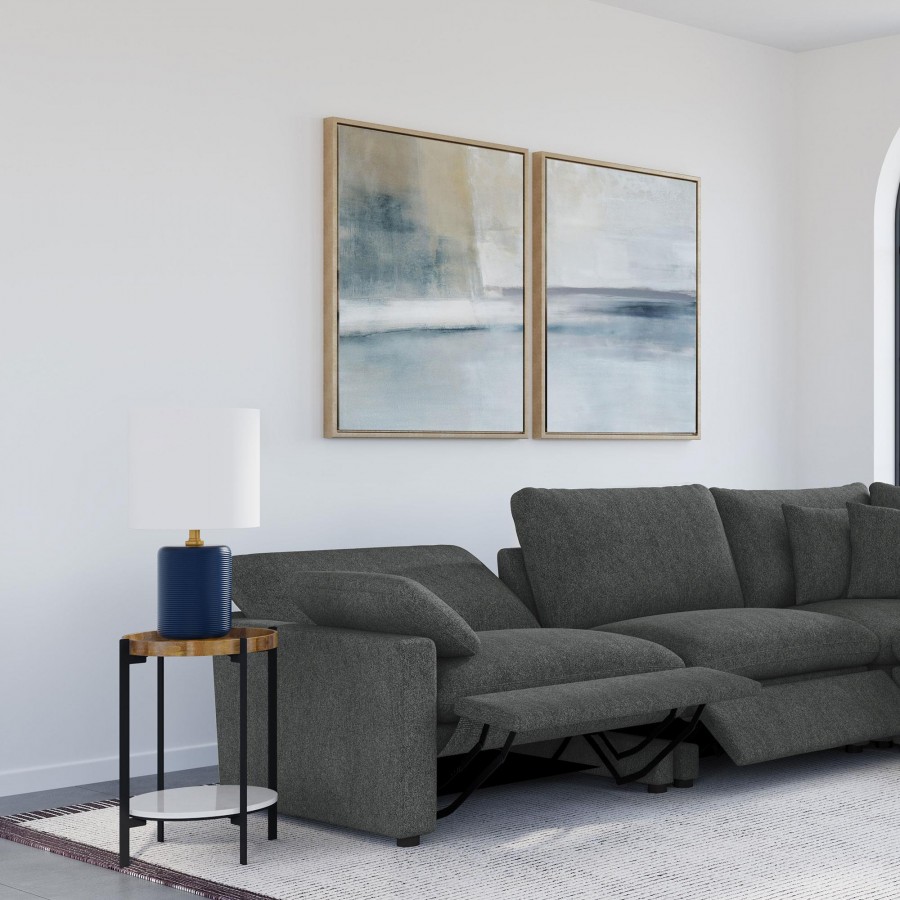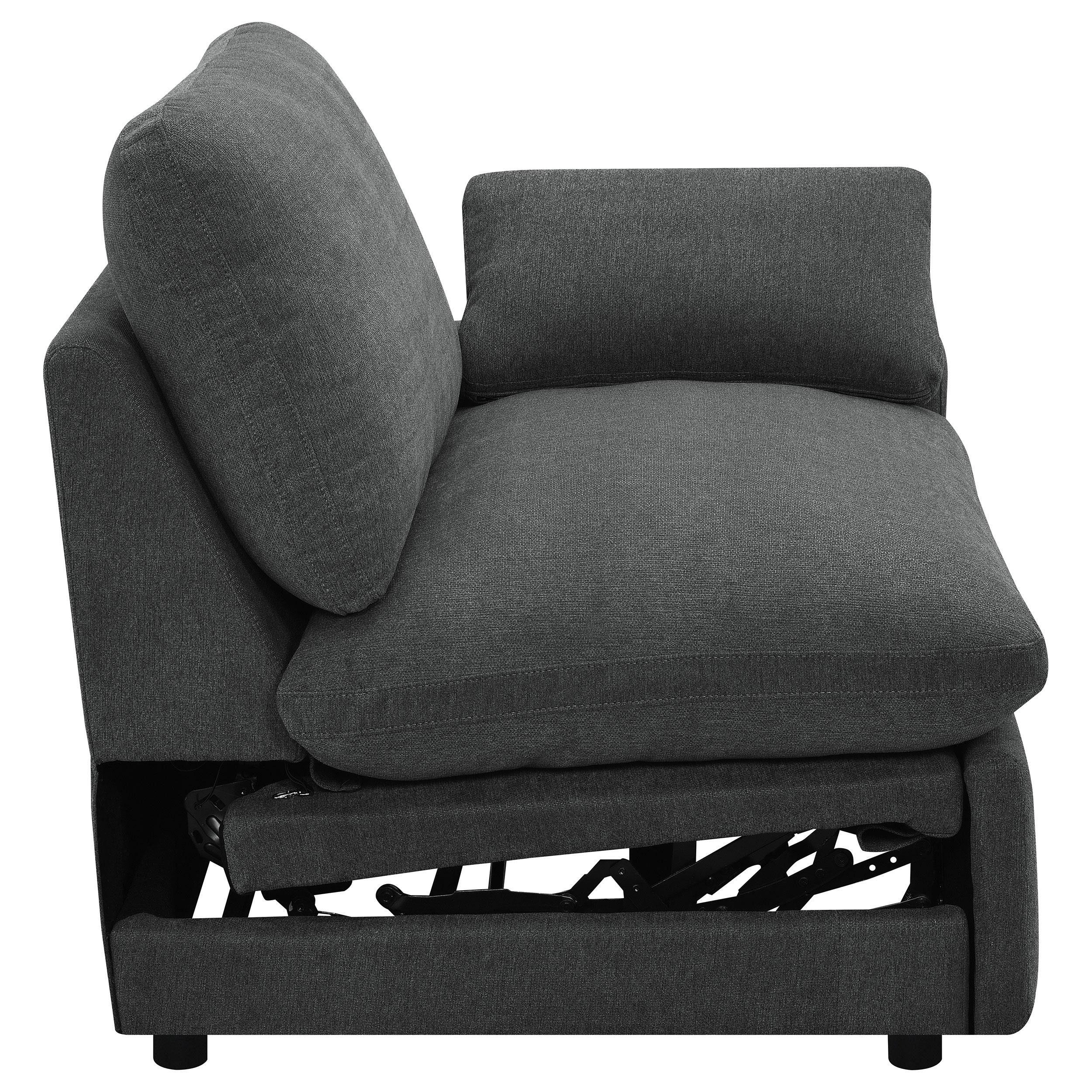 Complete your modular sectional with the RAF power recliner, designed for comfort and elegance. This right arm facing power recliner features a sleek, modern design and includes a plush pillow for added comfort. The premium down-like filled cushion provides a luxurious feel, while the power reclining function offers customizable relaxation.