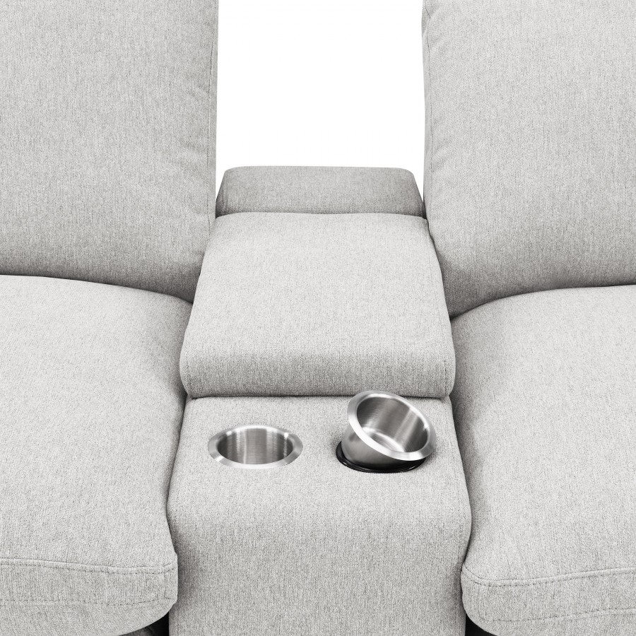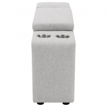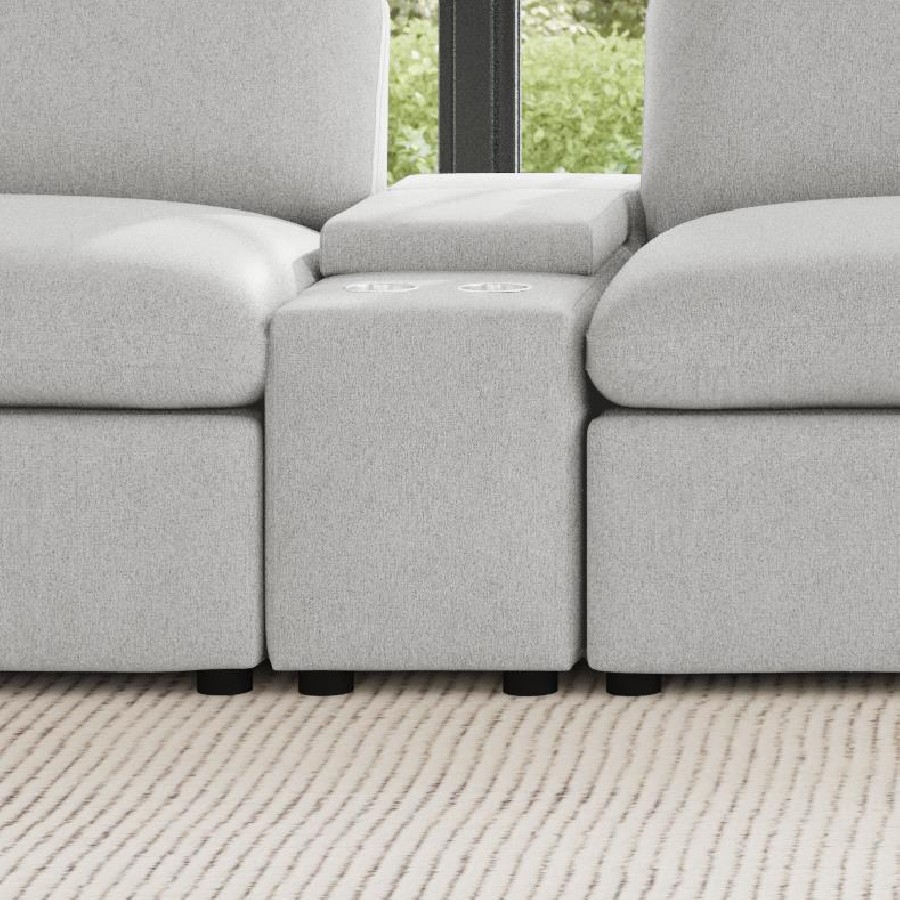 Elevate your sectional with this versatile console, designed to seamlessly integrate into your modular setup. Featuring a lift-top storage compartment for discreet organization and two stainless steel cup holders, this console enhances both functionality and convenience. Its compact design adds practical features without taking up extra space, making it a perfect addition to modern living spaces.