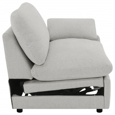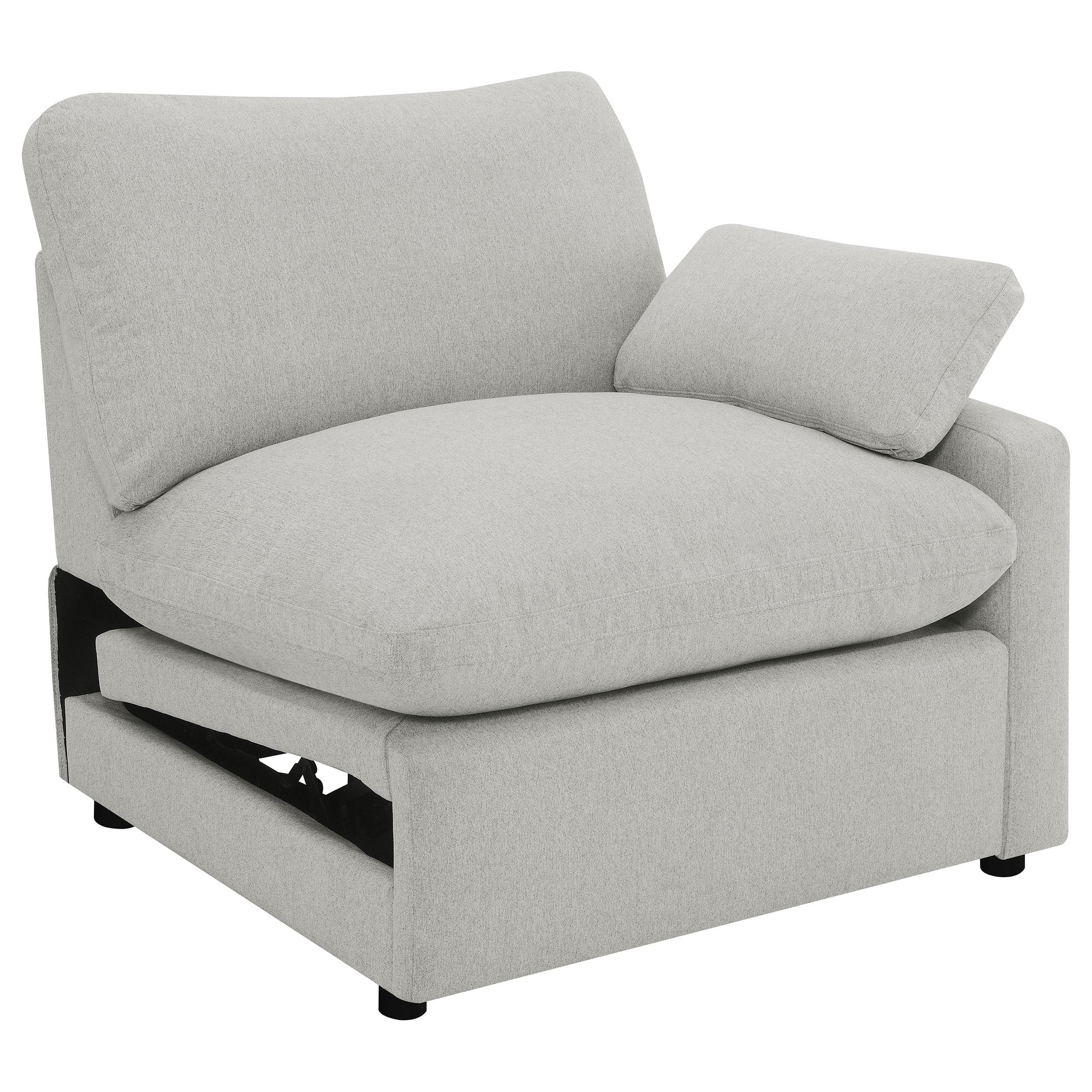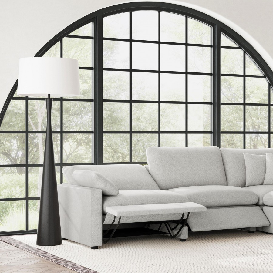 Complete your modular sectional with the RAF power recliner, designed for comfort and elegance. This right arm facing power recliner features a sleek, modern design and includes a plush pillow for added comfort. The premium down-like filled cushion provides a luxurious feel, while the power reclining function offers customizable relaxation.