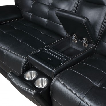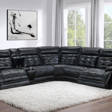 Experience ultimate luxury and relaxation with this three-piece dual power sectional sofa, crafted with top grain black leather that exudes elegance and durability. The contrast stitching and modern grid tufting design add a touch of sophistication, highlighting the luxurious material. The dual power functionality with power recline and power headrests offers customizable comfort, allowing you to adjust the position of the sectional to your liking with ease. The sectional includes a modern console that combines functionality with convenience, featuring hidden cup rests with removable stainless steel cup holders, a soft-close storage compartment, a USB-C charging port, and a wireless charger. Recline fully and find your perfect angle for ultimate relaxation with this beautifully designed sectional.