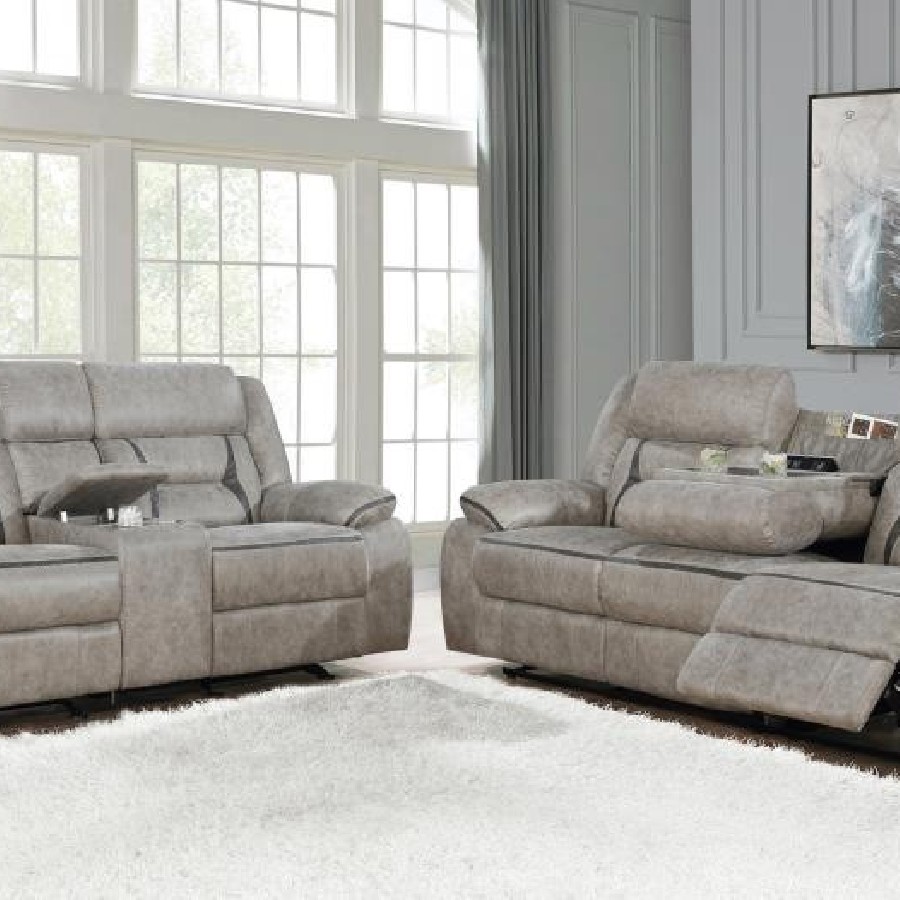 Greer 2-piece Upholstered Reclining Sofa Set Taupe