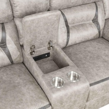 This reclining sofa set combines movie-night function with everyday comfort. Supple leatherette and contrast stitching frame pocket-coil seats topped with memory foam for supportive ease. Manual reclining mechanisms operate smoothly, with a wall-hugger design on the sofa to save floor space. A drop-down center table adds a pop-up power hub with USB charging and stainless steel cup holders, while the loveseat’s console brings lift-top storage, power, and cup holders to keep essentials close.