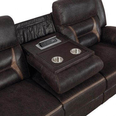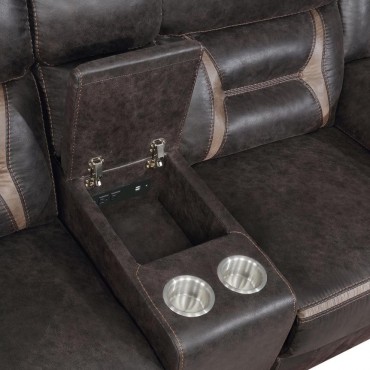 This reclining sofa set combines movie-night function with everyday comfort. Supple leatherette and contrast stitching frame pocket-coil seats topped with memory foam for supportive ease. Manual reclining mechanisms operate smoothly, with a wall-hugger design on the sofa to save floor space. A drop-down center table adds a pop-up power hub with USB charging and stainless steel cup holders, while the loveseat’s console brings lift-top storage, power, and cup holders to keep essentials close.