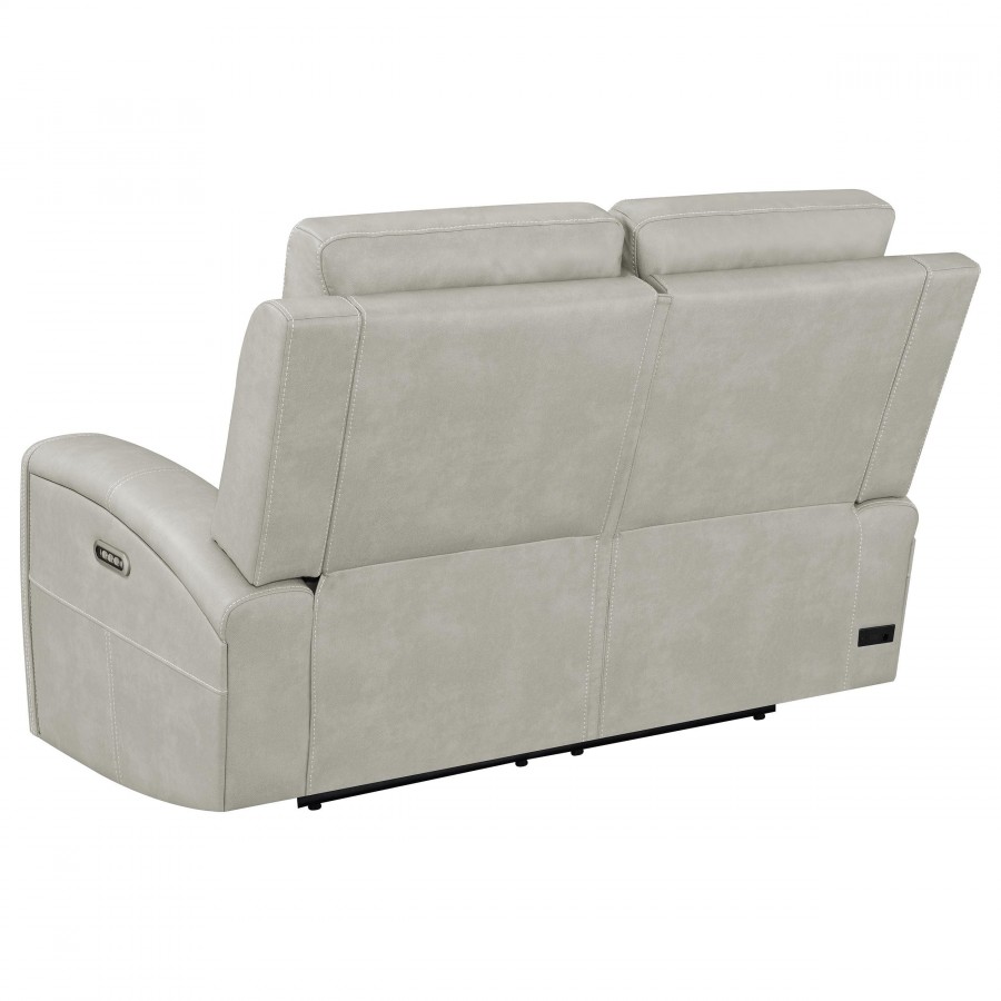 This triple power sofa set is crafted for complete relaxation and everyday luxury. Wrapped in soft leatherette with contrast stitching, each piece offers smooth reclining, adjustable lumbar, and power headrest support at the touch of a button. Hidden cup holders are tucked within each armrest, while a built-in control panel with USB A and USB C charging ports keeps essentials close. A rear-mounted power access panel includes an emergency battery feature for uninterrupted comfort, even during power loss.