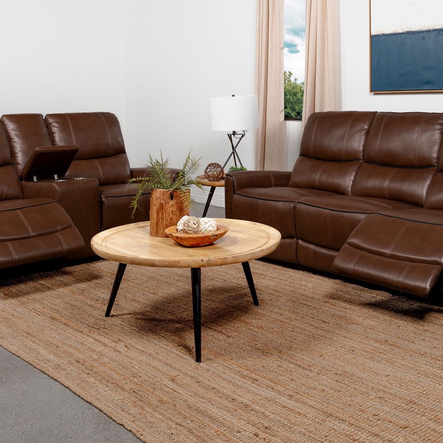 Greenfield 2-piece Power Reclining Sofa Set Saddle Brown