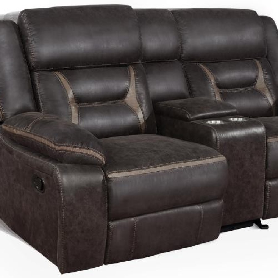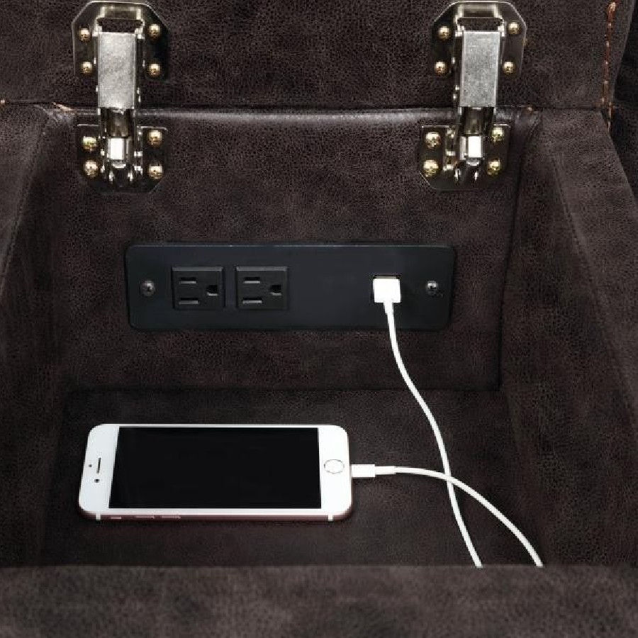 This reclining sofa set combines movie-night function with everyday comfort. Supple leatherette and contrast stitching frame pocket-coil seats topped with memory foam for supportive ease. Manual reclining mechanisms operate smoothly, with a wall-hugger design on the sofa to save floor space. A drop-down center table adds a pop-up power hub with USB charging and stainless steel cup holders, while the loveseat’s console brings lift-top storage, power, and cup holders to keep essentials close.