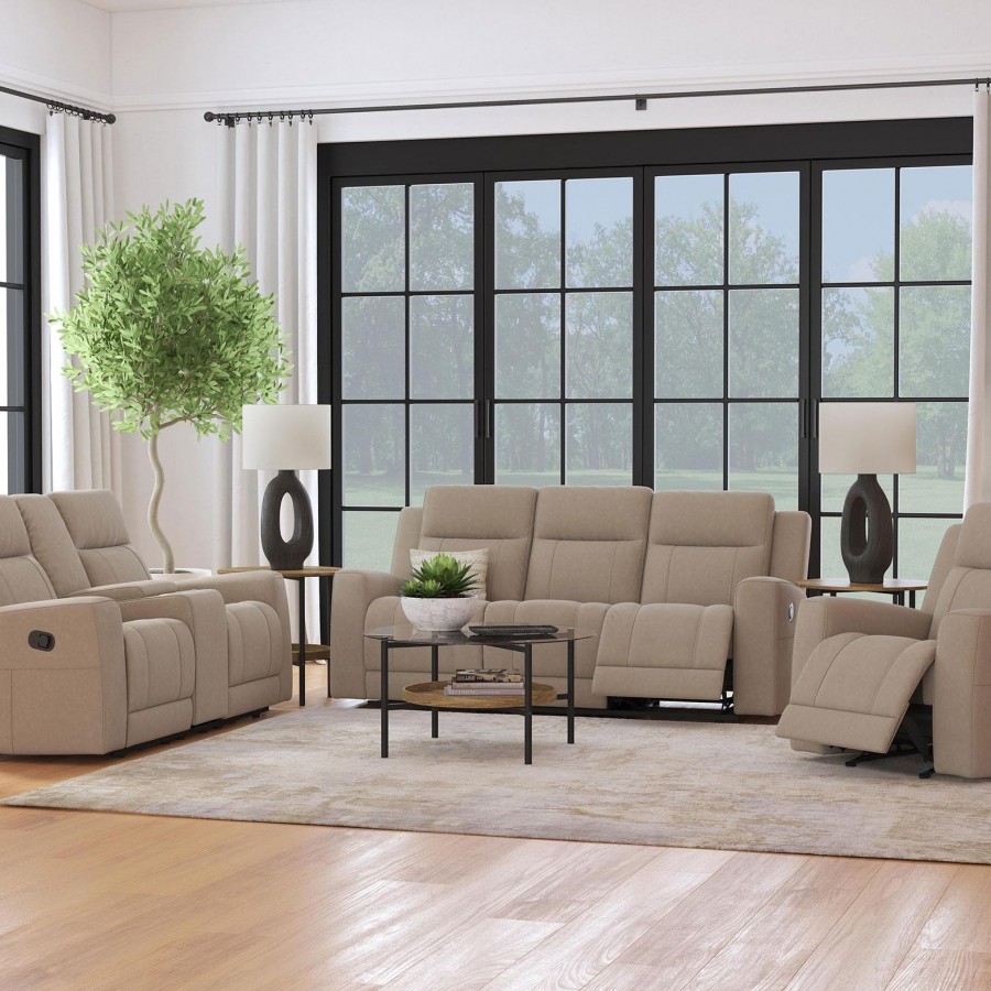 Brentwood 3-piece Upholstered Reclining Sofa Set Taupe