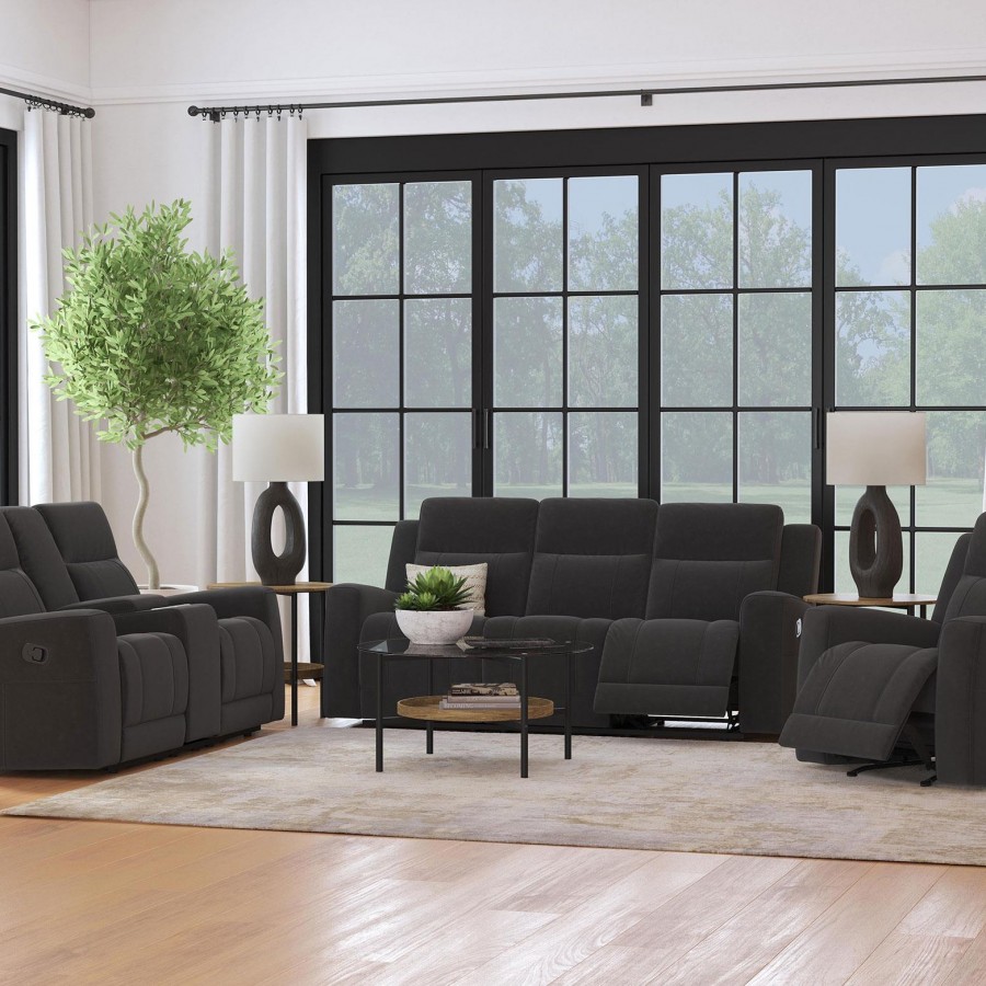 Brentwood 3-piece Upholstered Reclining Sofa Set Charcoal