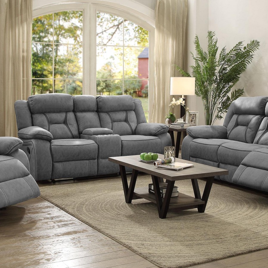 Higgins Upholstered Motion Reclining Sofa Grey